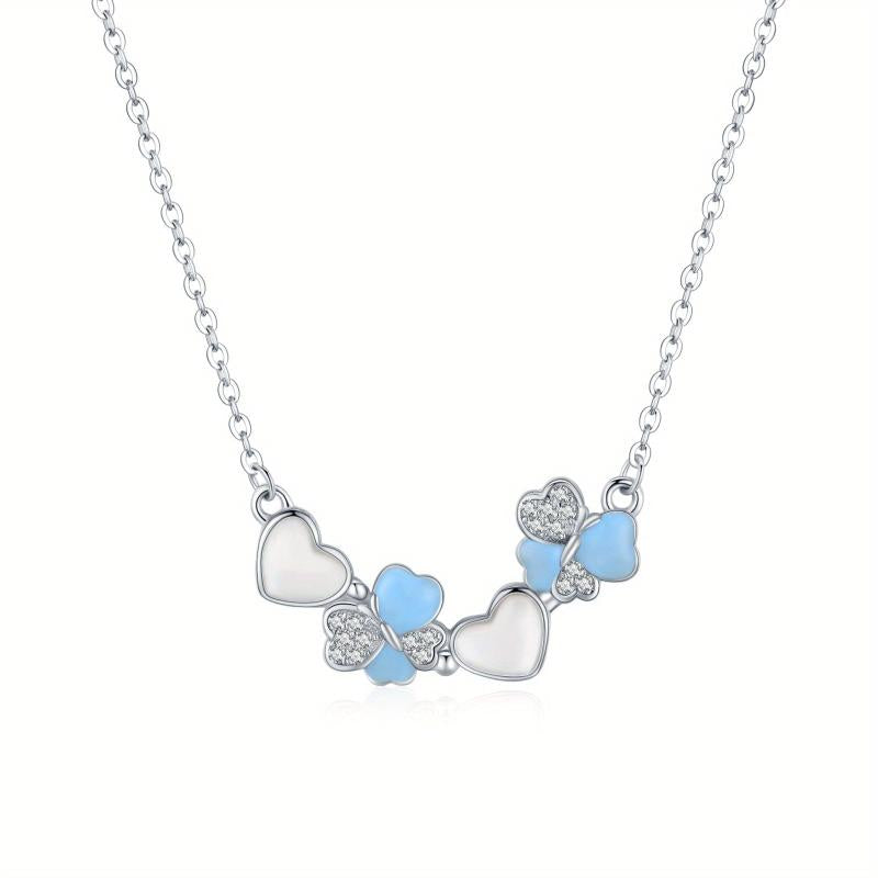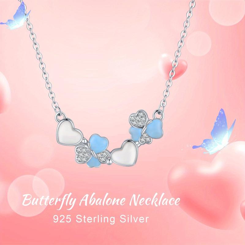 This beautiful necklace features a sterling silver butterfly pendant with a heart design, perfect for women's birthday or engagement gift.