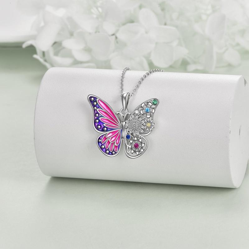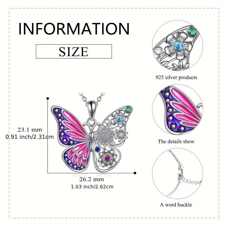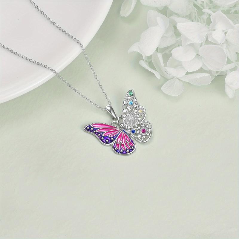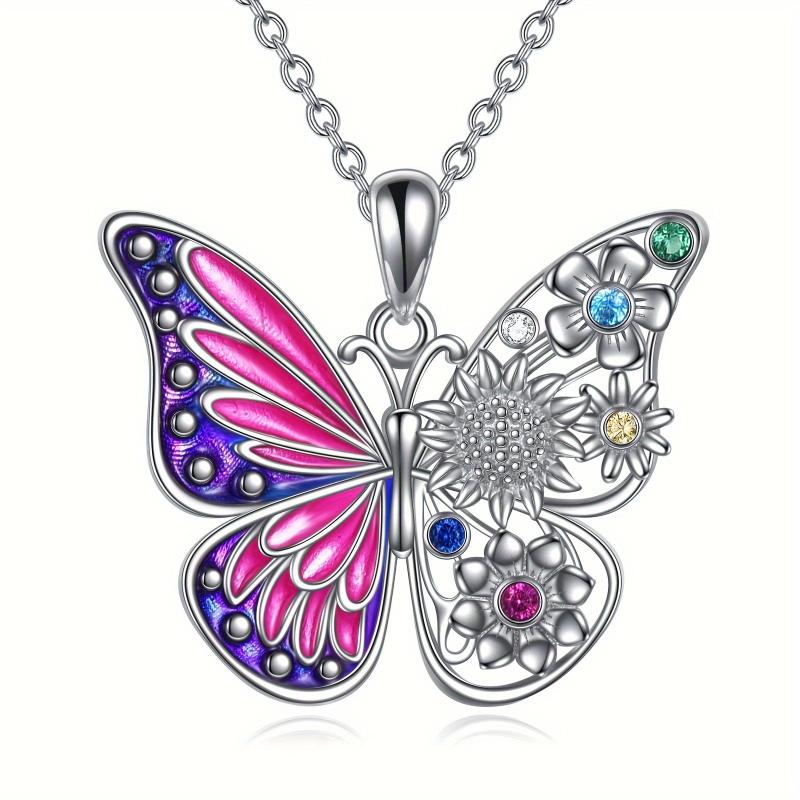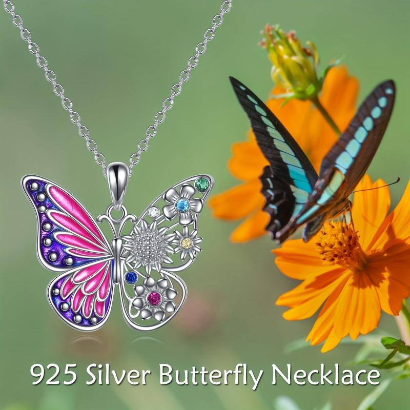 This stunning 925 sterling silver necklace features a sunflower pendant with a colorful enamel butterfly. A perfect gift for women who love nature-inspired jewelry.