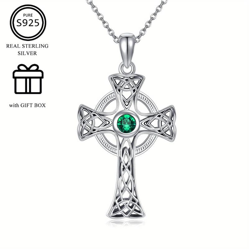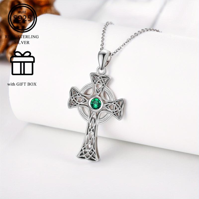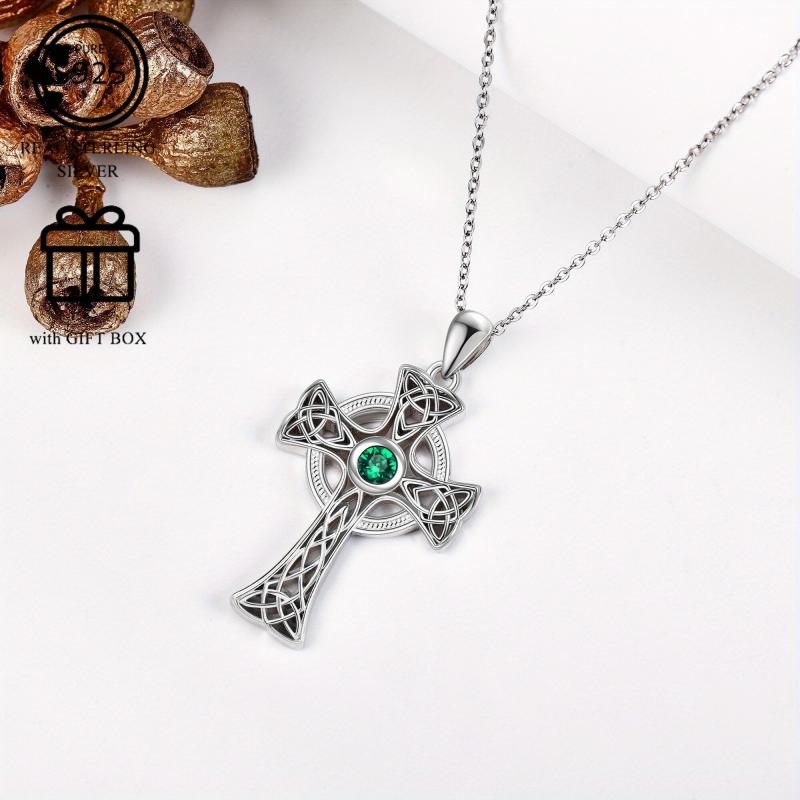 This Celtic cross necklace is made of 925 sterling silver, featuring intricate Celtic knot design. A perfect piece of Irish jewelry for women.