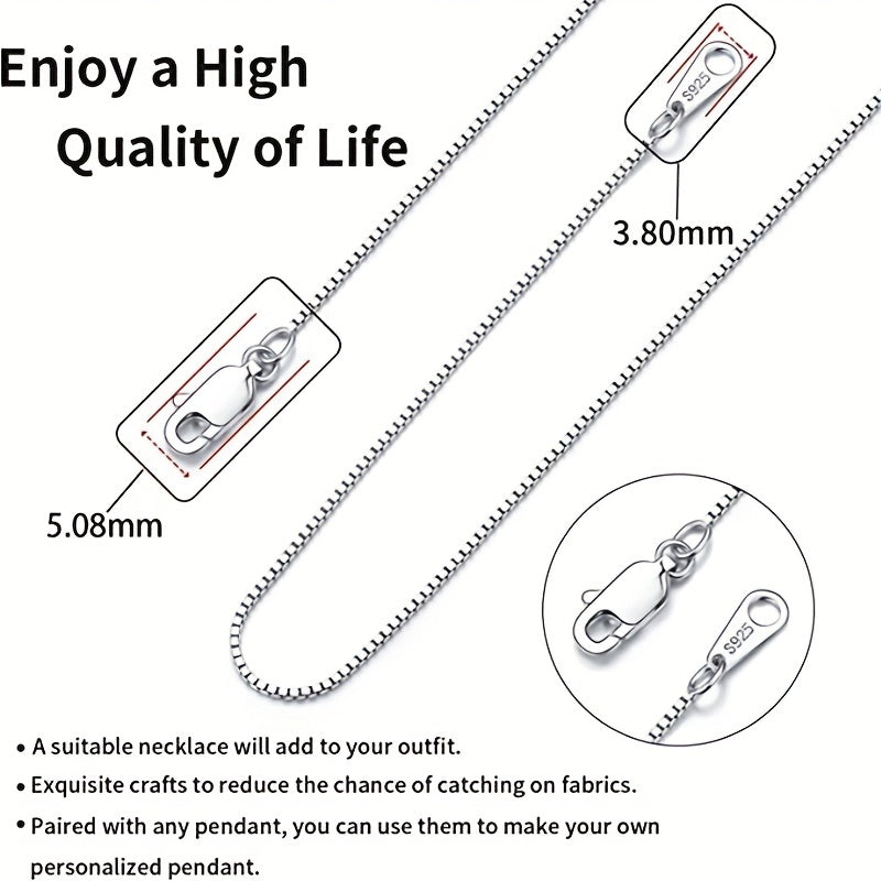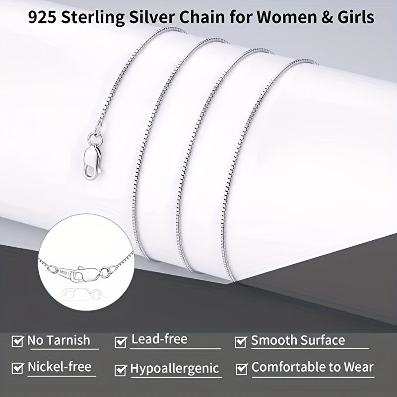 This 925 sterling silver box chain necklace is a perfect gift for women and girls. It features a lobster claw clasp for secure wearing.