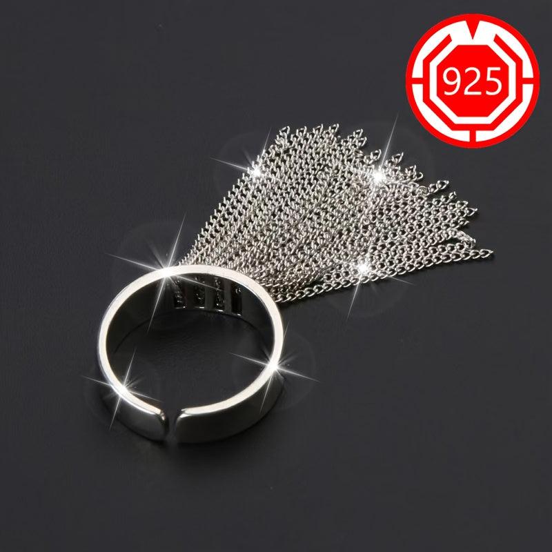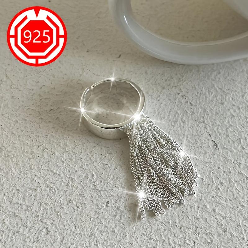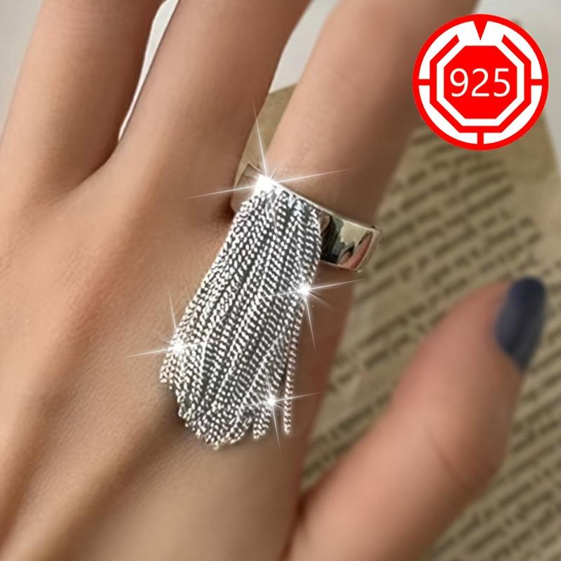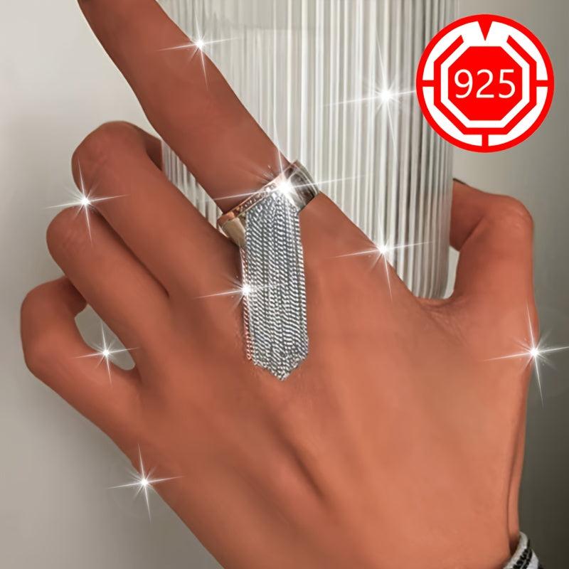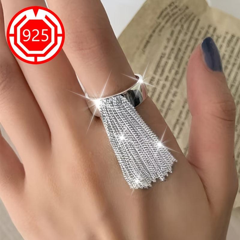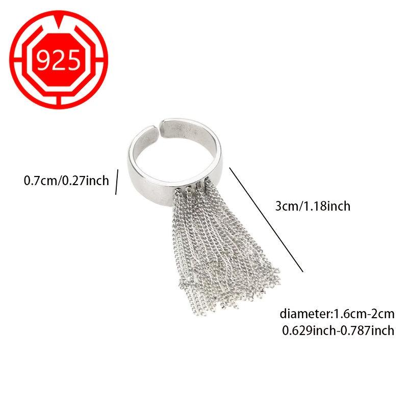 This 925 silver ring is hypoallergenic and features an exaggerated matte chain tassel design. It is perfect for the minimalist cold style and can be worn on the index finger. Ideal as a gift for couples.