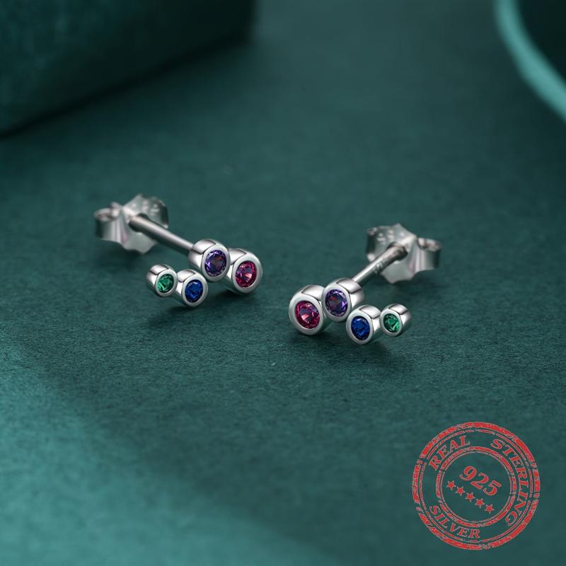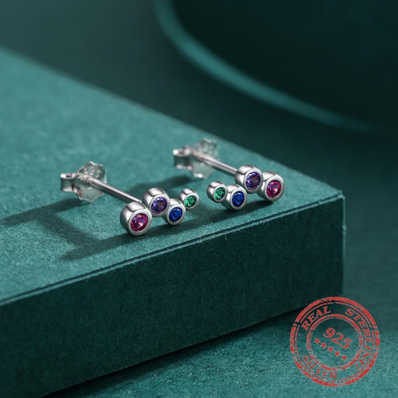 Adorn your ears with these sweet and dainty bubble stud earrings made of 925 sterling silver and colorful cubic zirconia. Perfect for adding a pop of color to any outfit.