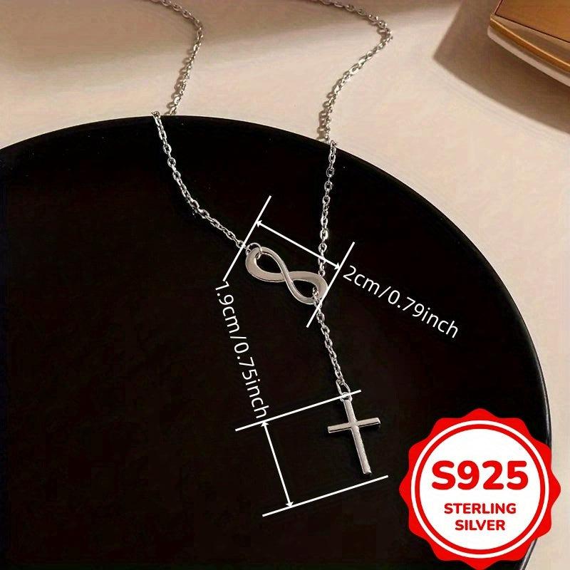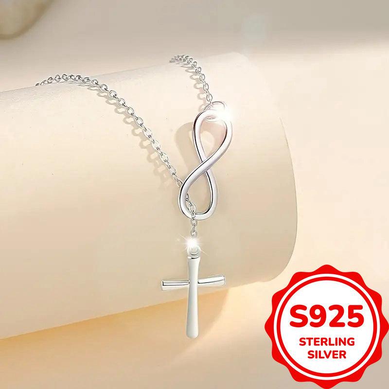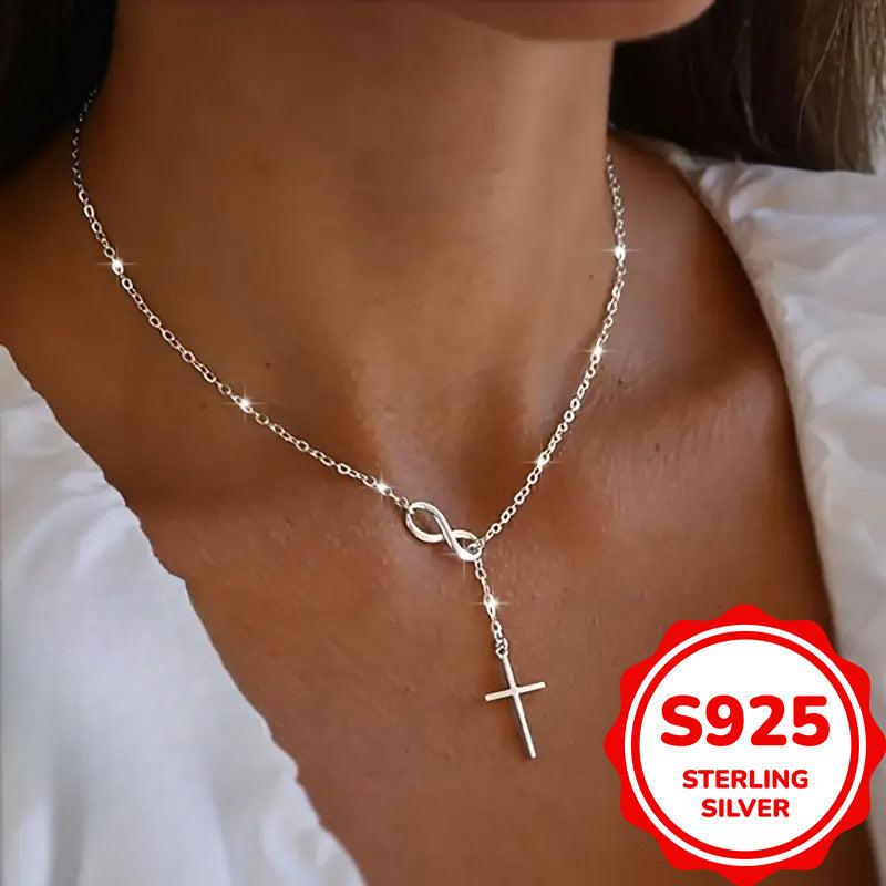 This stunning 925 sterling silver cross necklace is perfect for holiday parties or as an anniversary gift. It features a beautiful infinity design that symbolizes eternal love and connection.