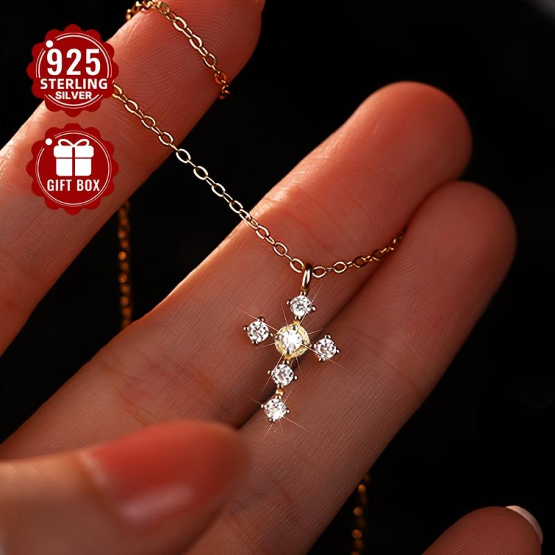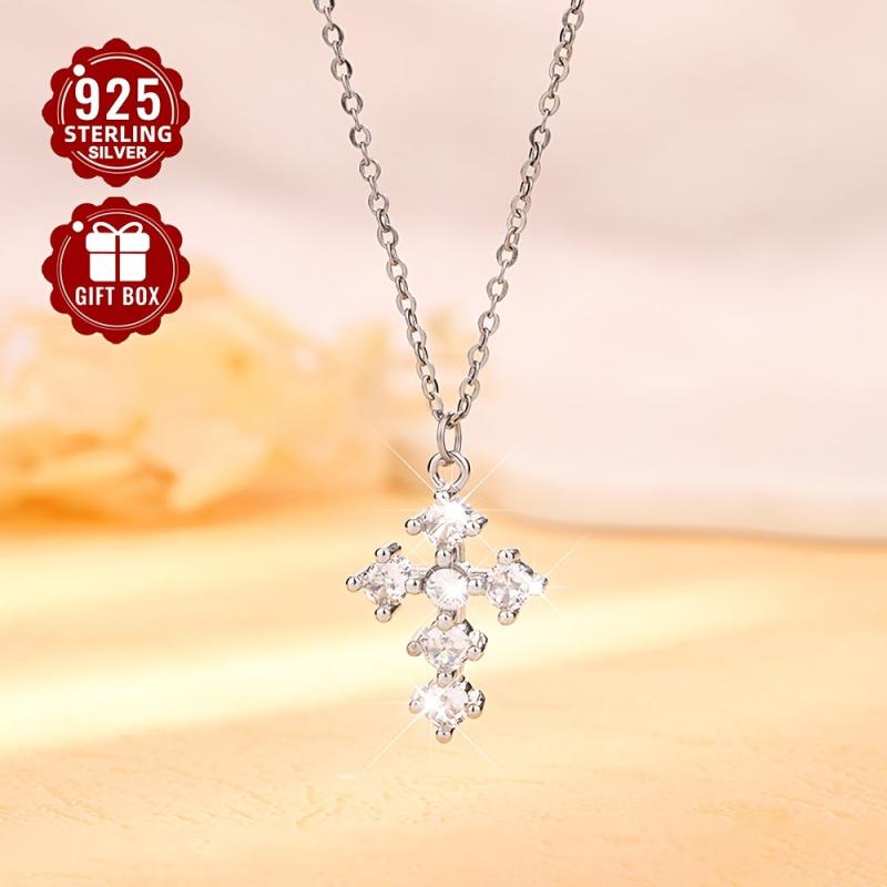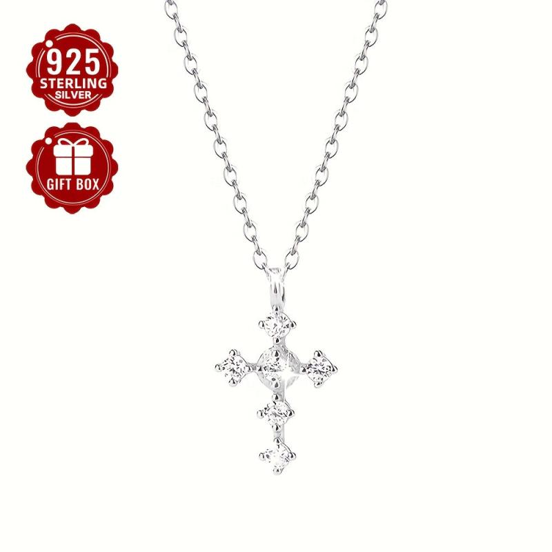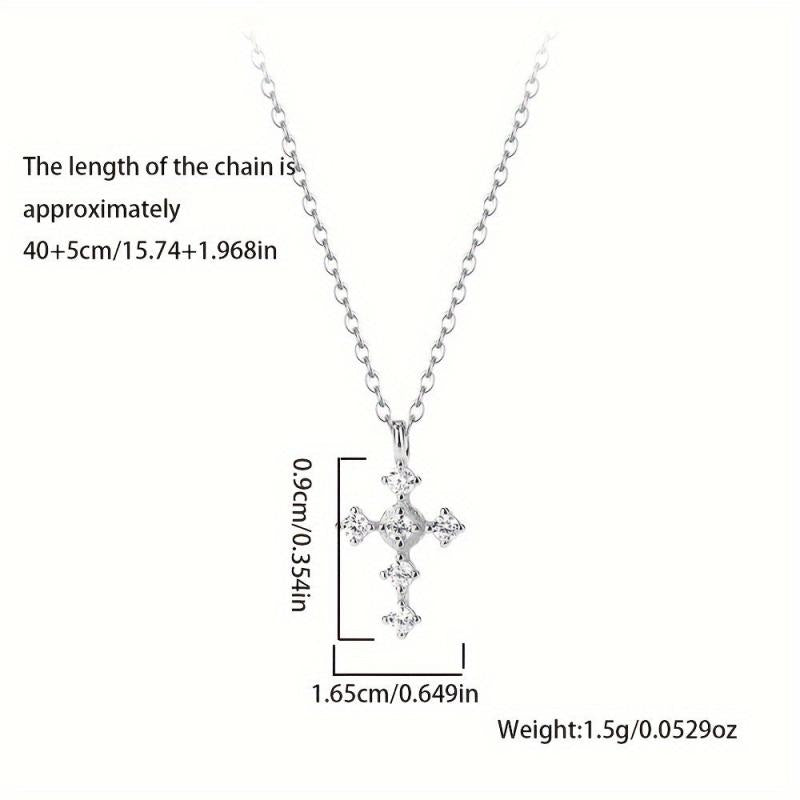 Stunning 925 sterling silver necklace featuring a cross pendant with synthetic zirconia inlay. This choker chain is perfect for women with sensitive skin as it is low allergy. Lightweight at approximately 1.5g.