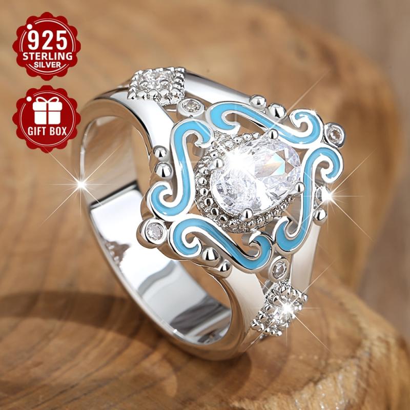 This retro style ring features a crown pattern engraved design and sparkling cubic zirconia. Perfect for a bohemian vintage wedding look.