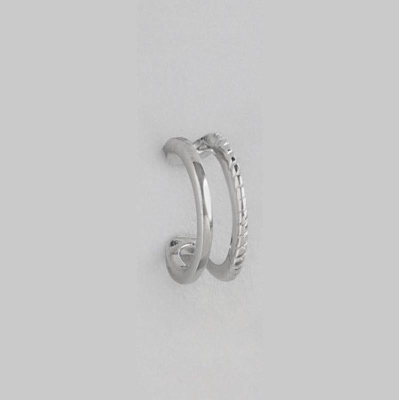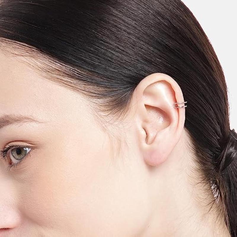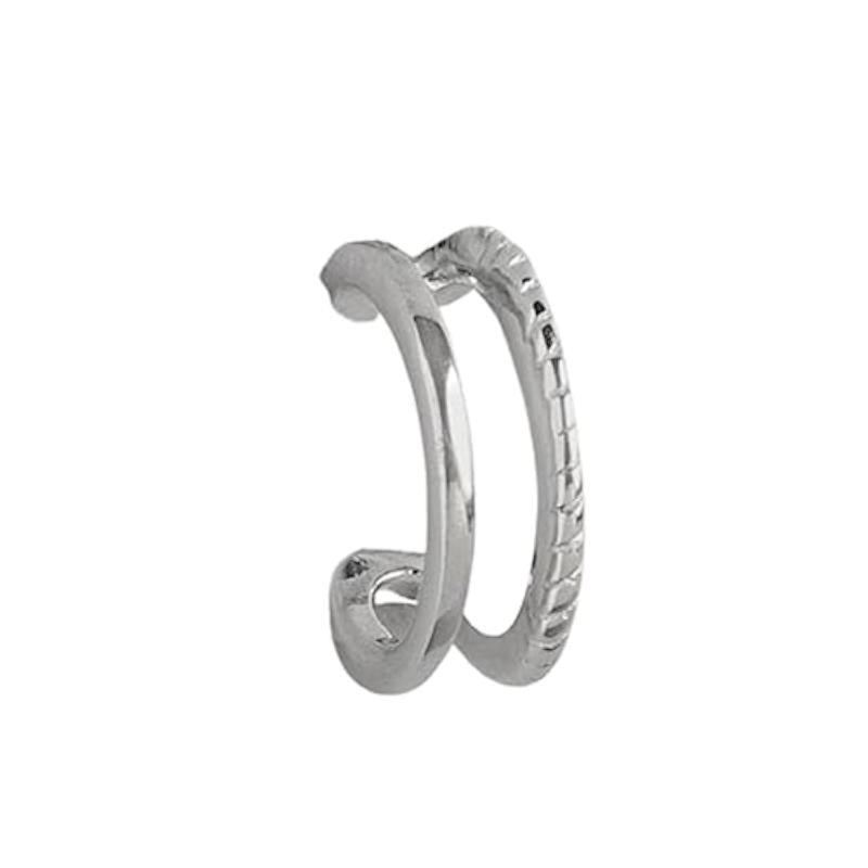 Add a touch of glam to your look with this stunning earcuff featuring dual layers of sparkling cubic zirconia stones. Rhodium plated for a high-shine finish.