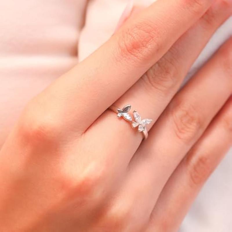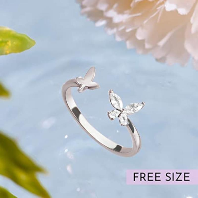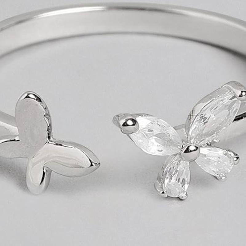 Adorn your fingers with this stunning 925 sterling silver ring featuring a sparkling cubic zirconia butterfly design. The ring is rhodium plated for a long-lasting shine and comes with the hallmark of authenticity.