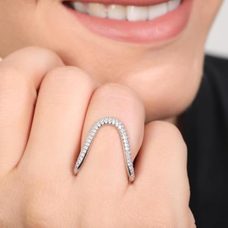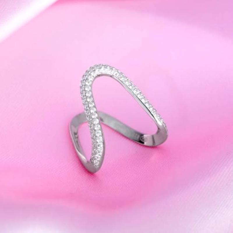 Elegant minimal ring made of 925 sterling silver with cubic zirconia stones. Rhodium plated for a lasting shine. Features a hallmark for authenticity.