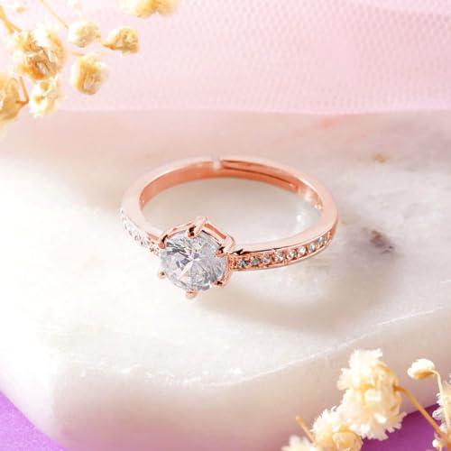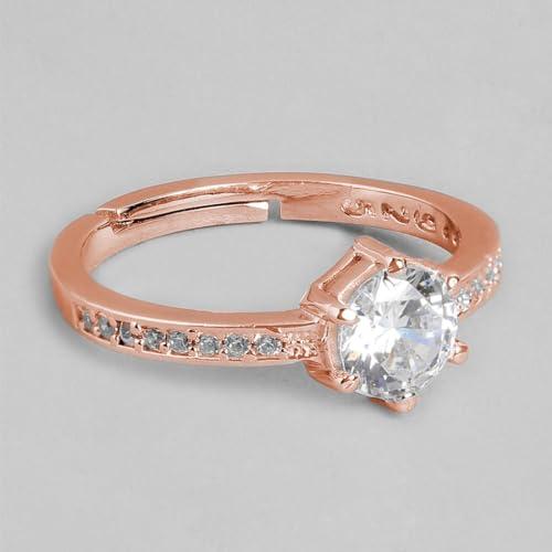Elegant 925 sterling silver ring with a touch of grace, adorned with sparkling cubic zirconia stones and rose plating.