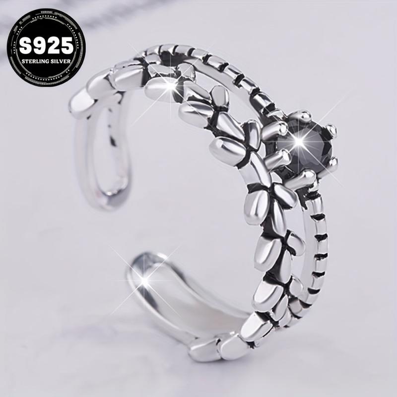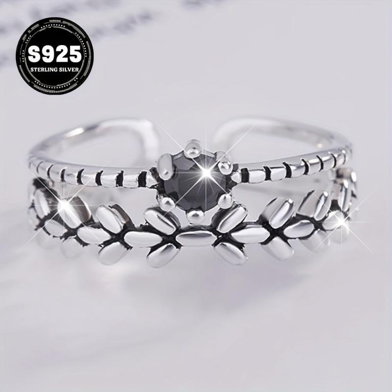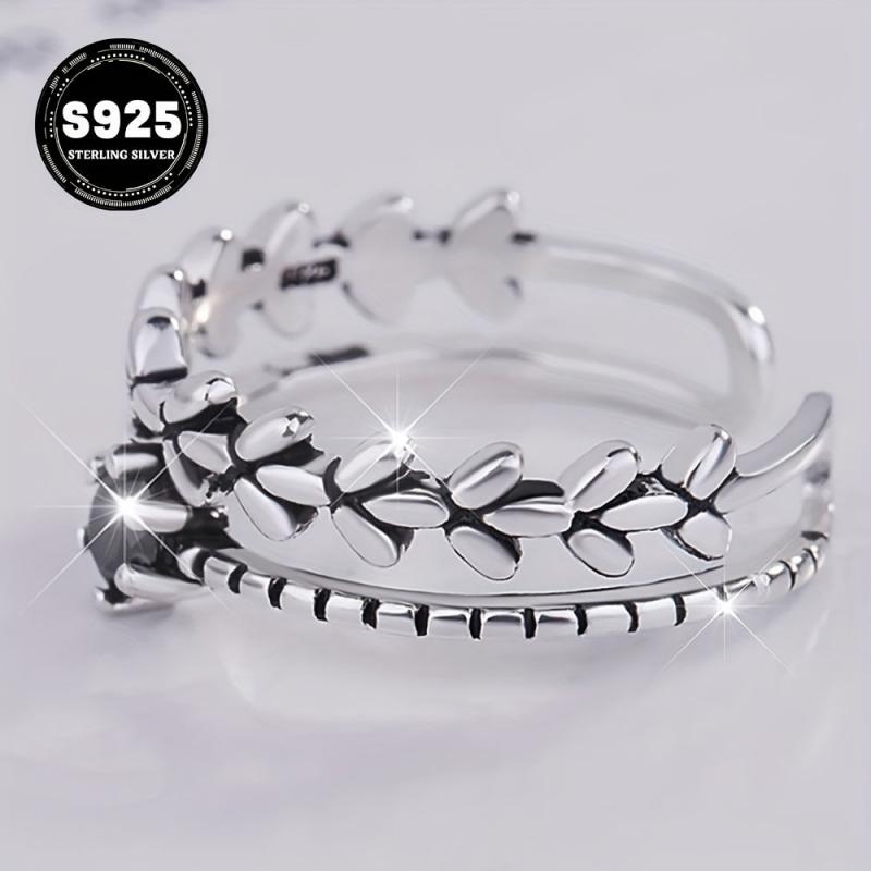 Vintage-inspired 925 sterling silver open ring featuring cubic zirconia twist design. Ideal for daily wear, travel, parties, and as a gift for loved ones.