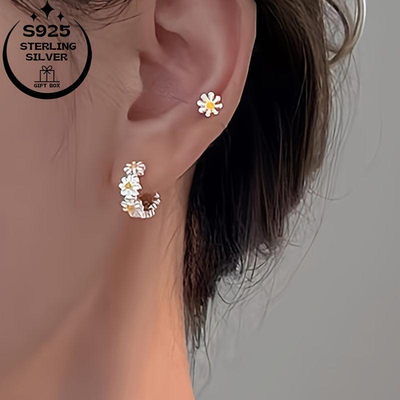 Ideal for anniversaries and birthdays, these charming earrings are perfect for parties, daily wear, and summer vacations. Crafted from 925 silver, they feature a delicate daisy flower design.