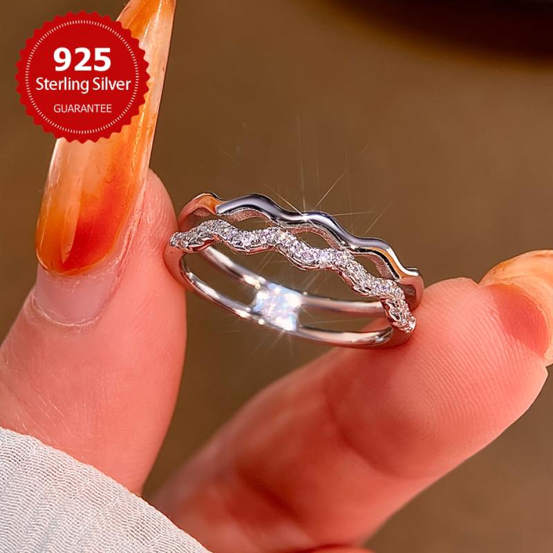 This stunning ring features two bands of 925 sterling silver and sparkling cubic zirconia stones. Perfect for any special occasion!