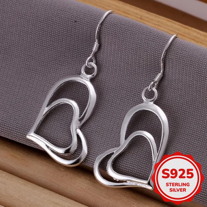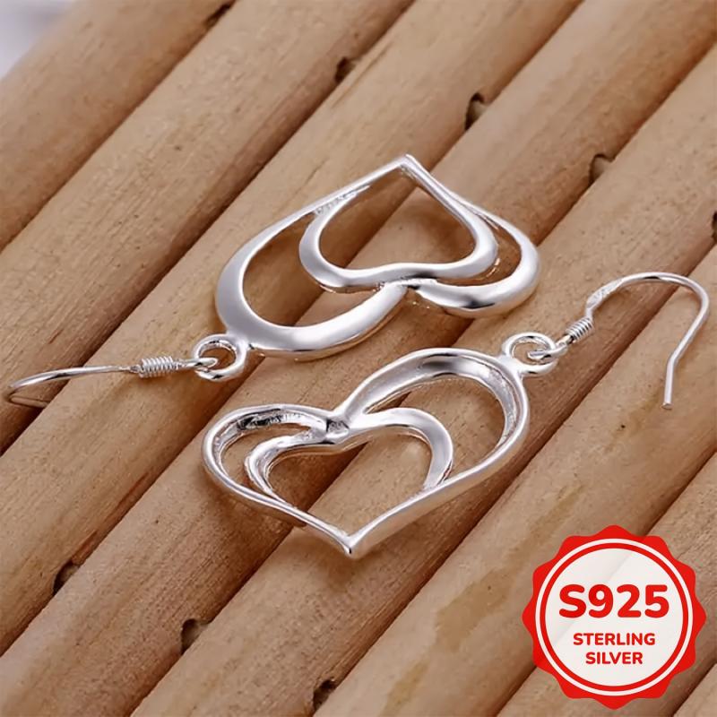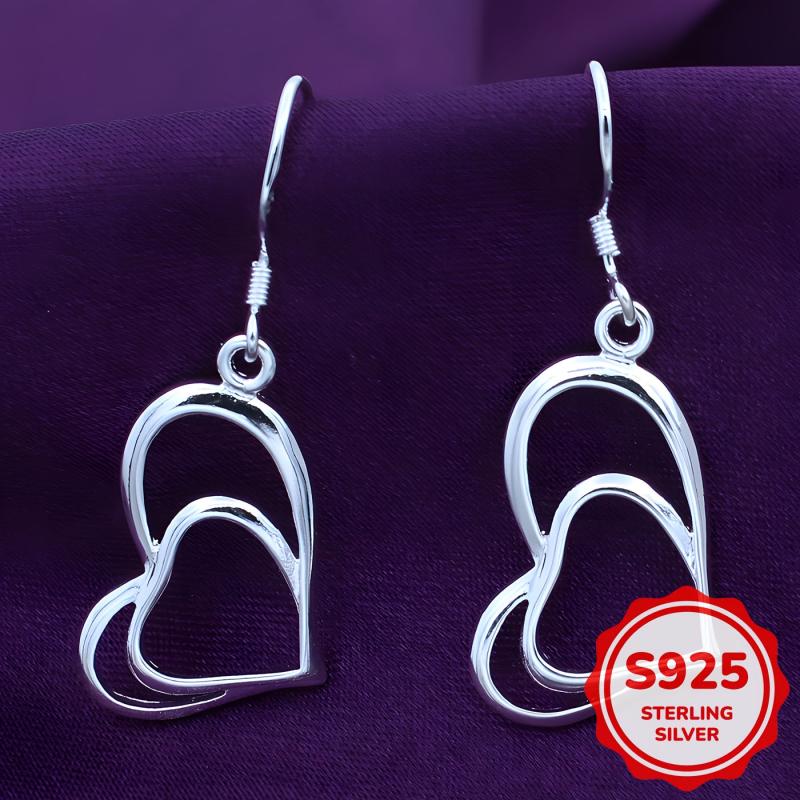 These double heart dangle earrings are made of 925 sterling silver, perfect for women with sensitive skin. They feature a romantic vintage hip hop style design, weighing 3g. Comes in an antioxidant box, making it a perfect gift for any occasion.