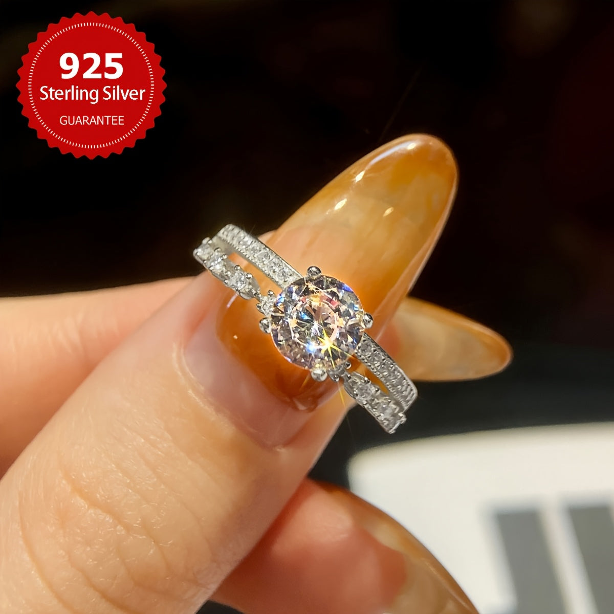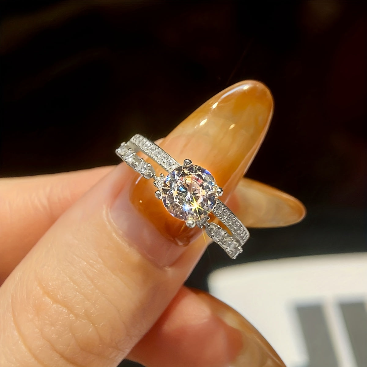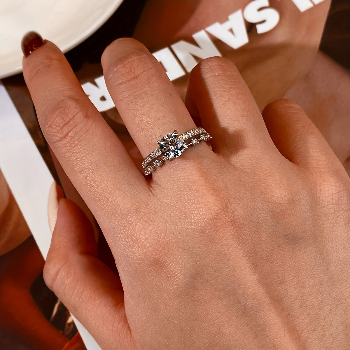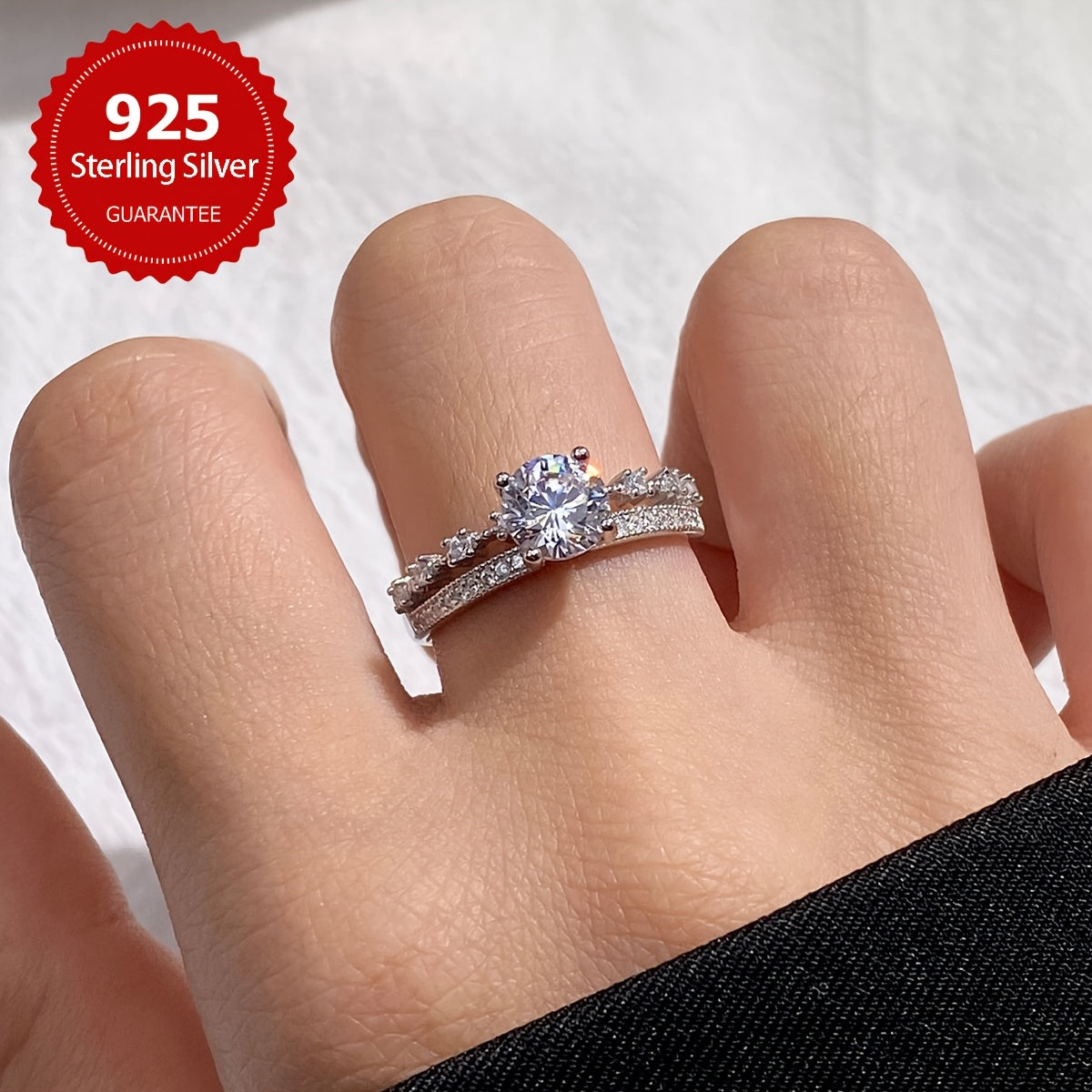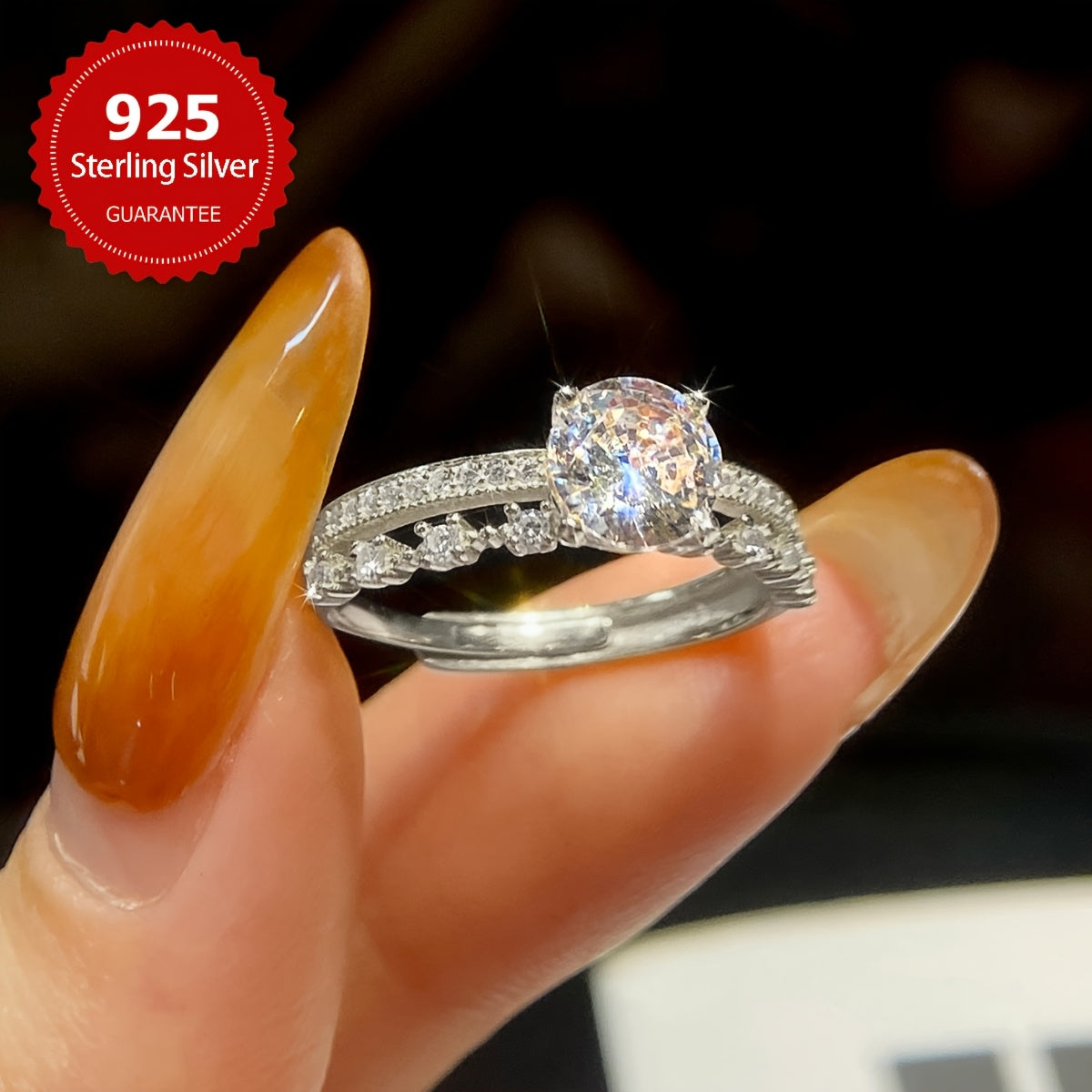 This double layer open ring is made of 925 sterling silver and features synthetic zirconia. It is perfect for daily wear and gift giving, ideal for Valentine's Day.