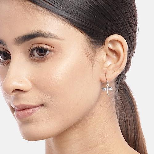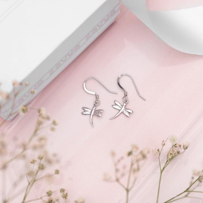 Stunning dragonfly dangler earrings made of 925 sterling silver with rhodium plating. Features a beautiful dragonfly design. Perfect for everyday wear or special occasions.