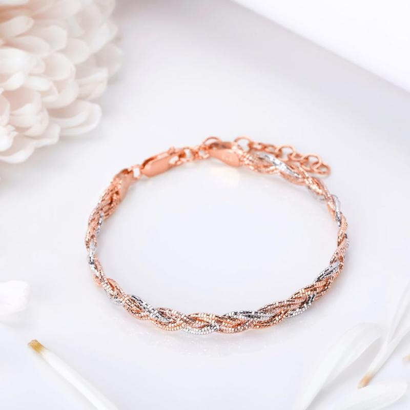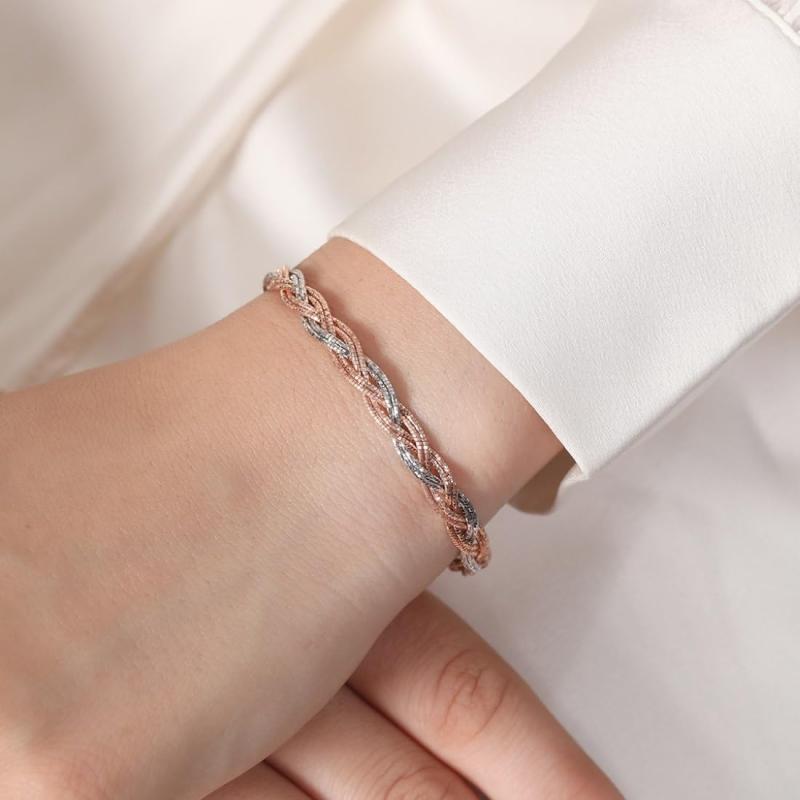 Elegant and secure flat rope chain bracelet crafted from 925 sterling silver with dual tone plating.