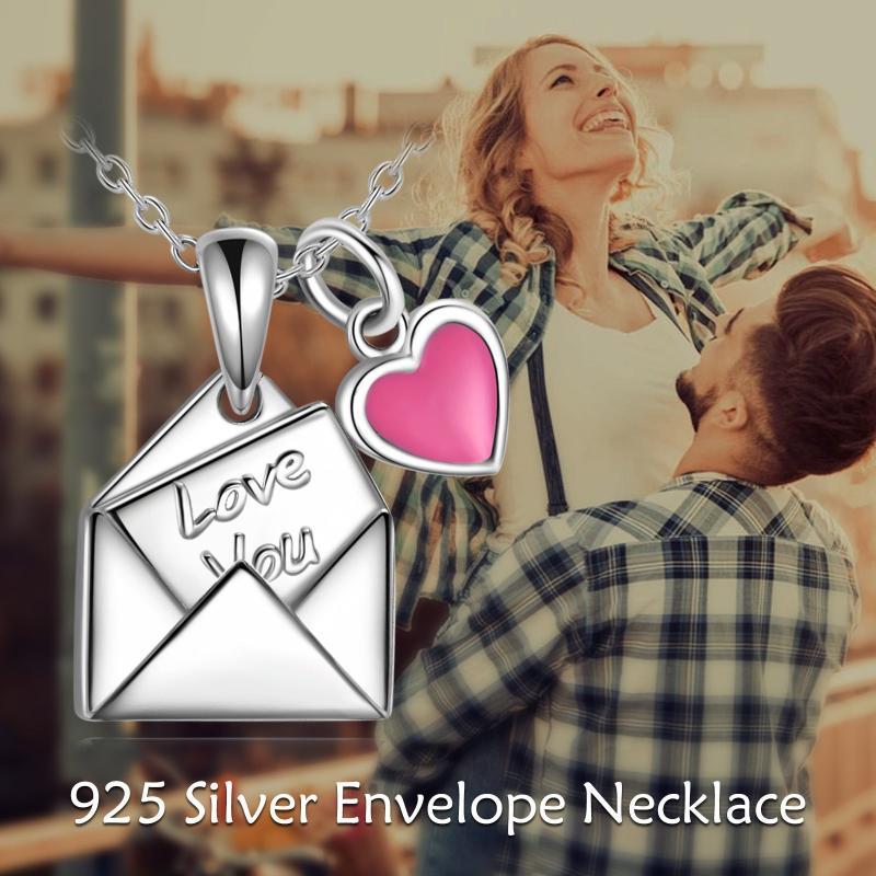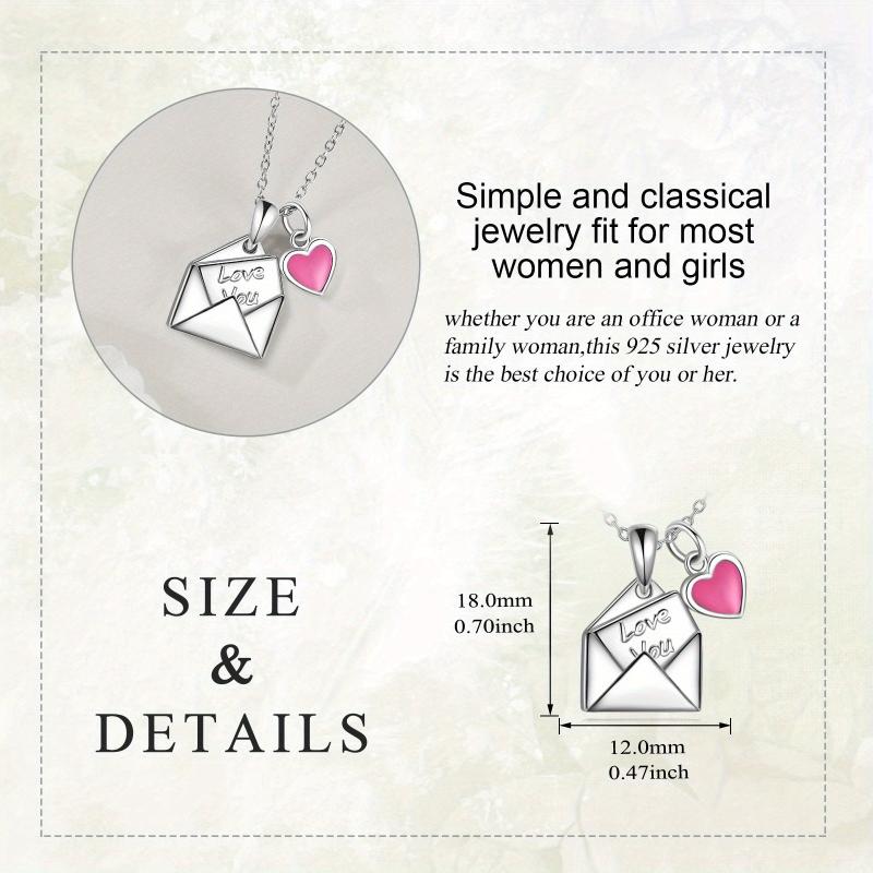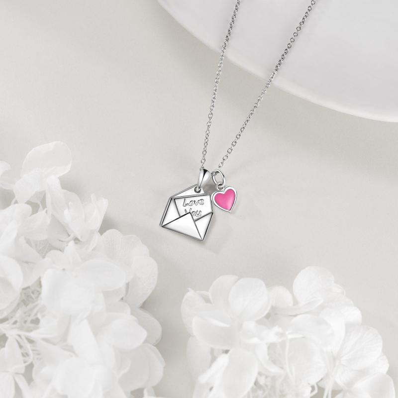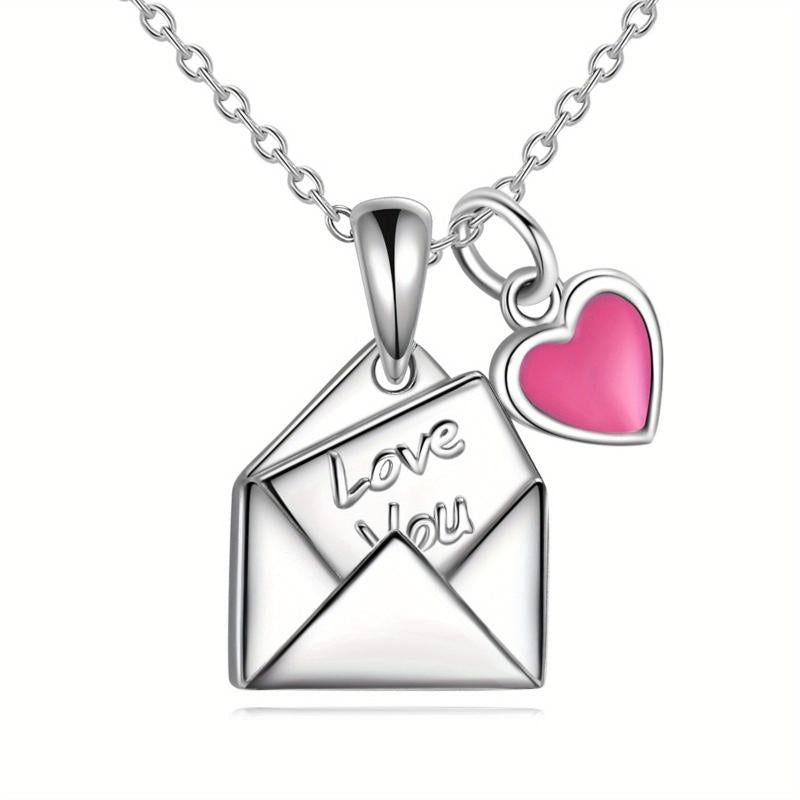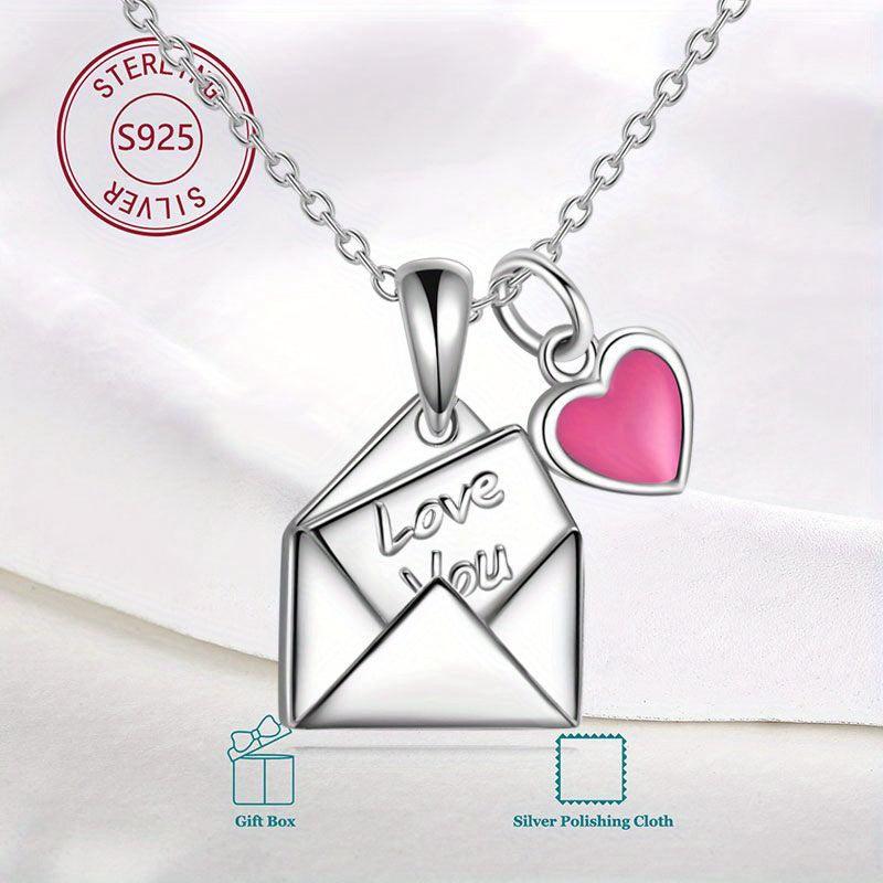 Express your love with this cute envelope necklace featuring a love letter design. Made from 925 sterling silver, this heart jewellery is perfect for women.