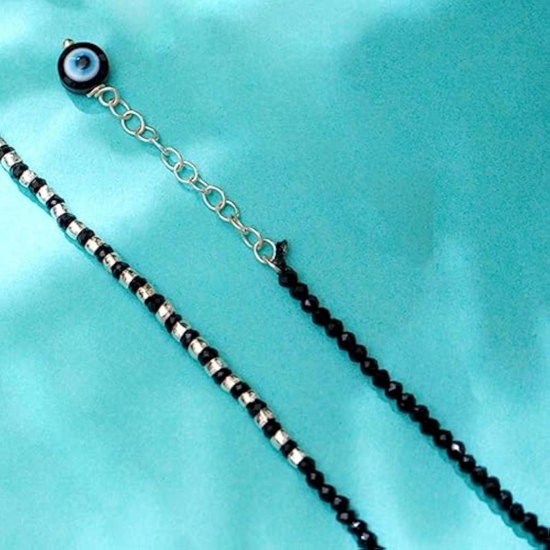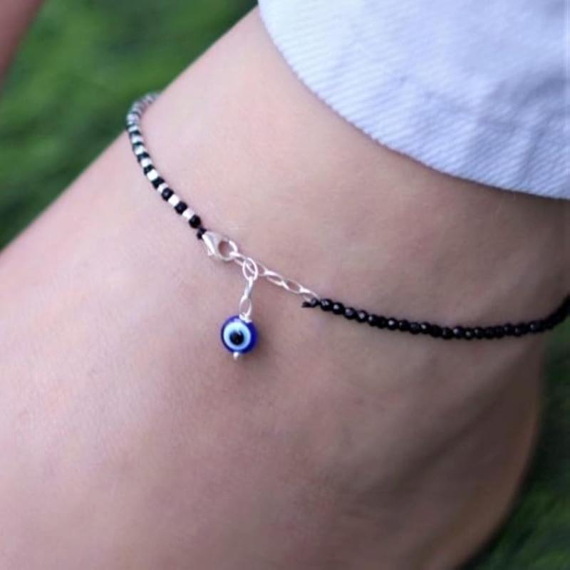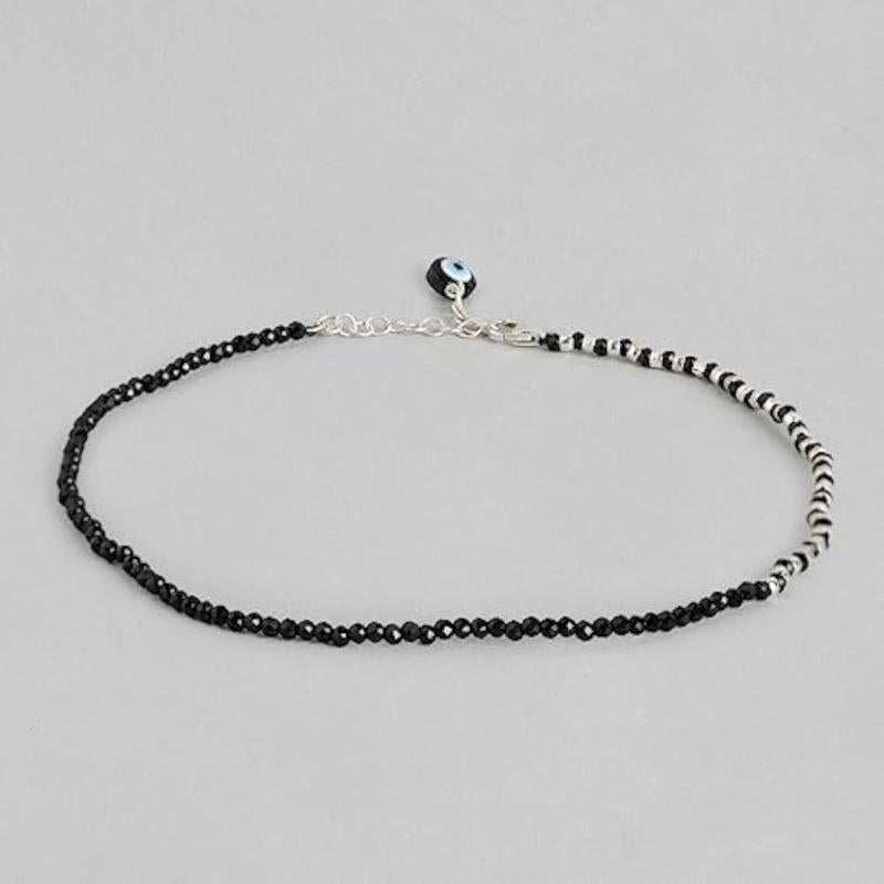 Dazzle with this stunning 925 sterling silver evil eye anklet, featuring a rhodium plating and adjustable design. Perfect for adding a touch of style to your look.