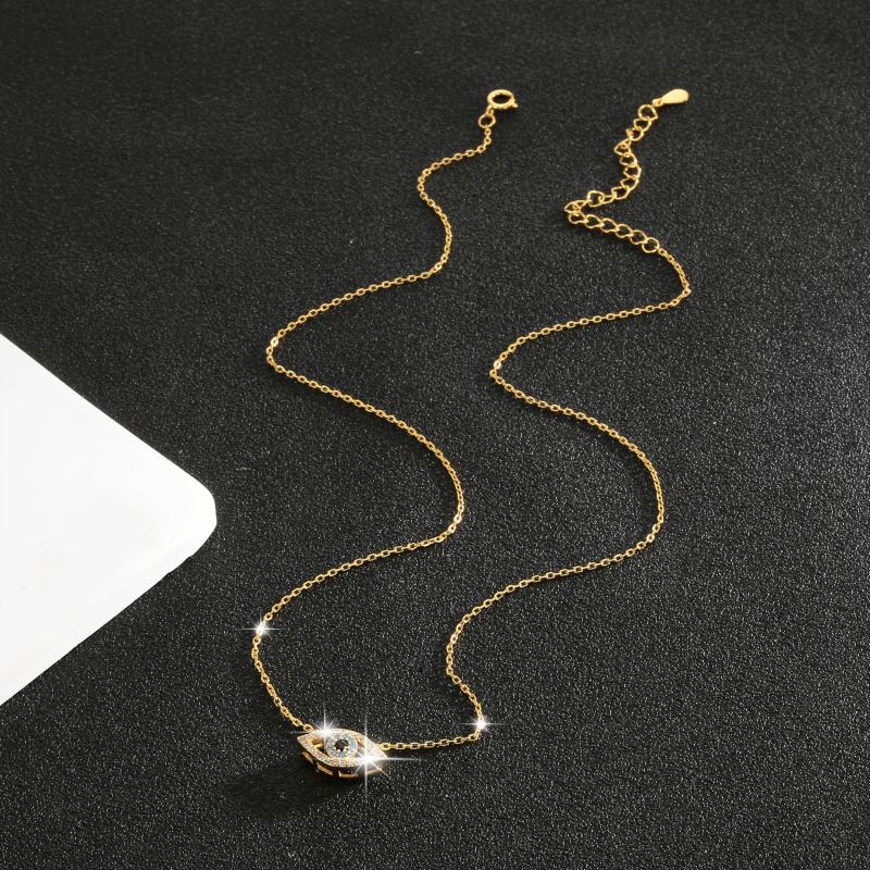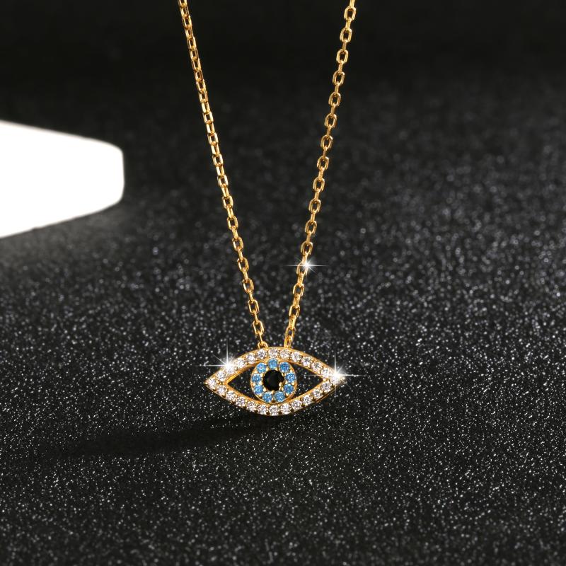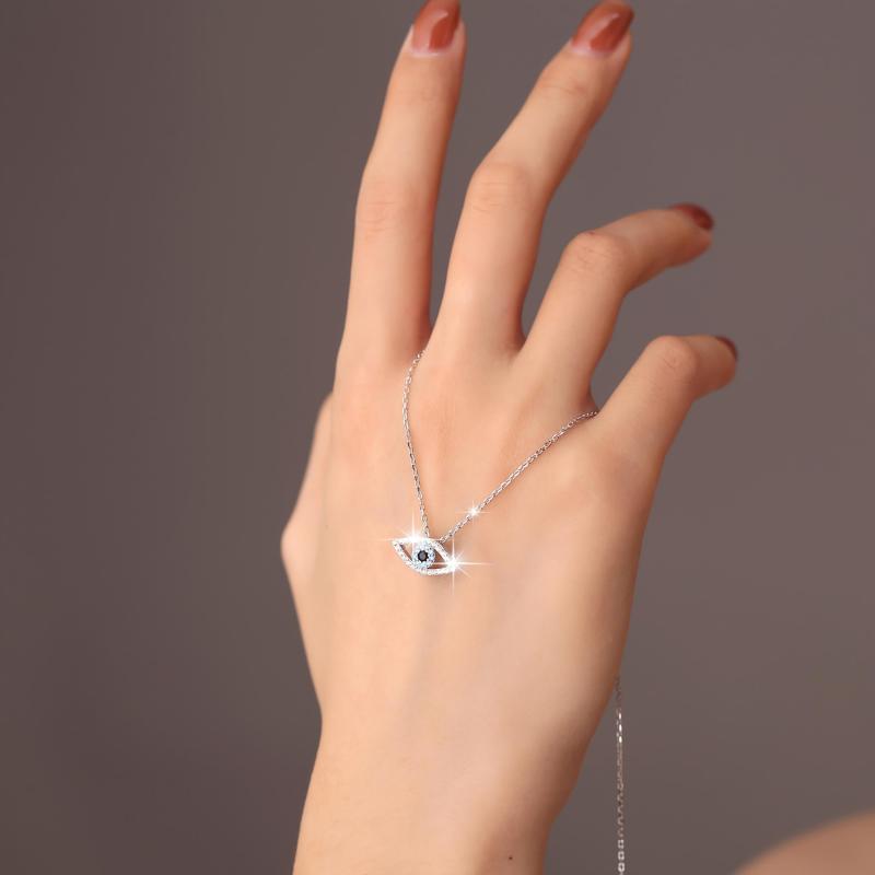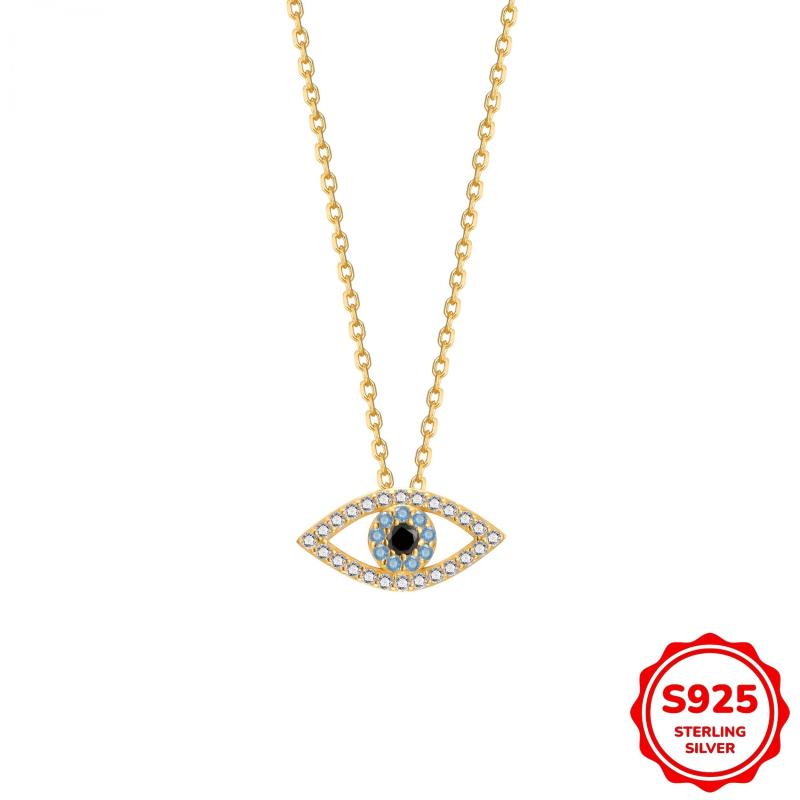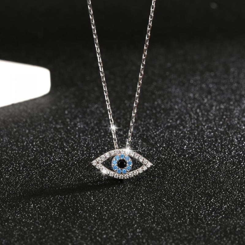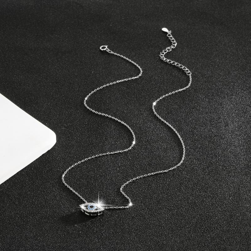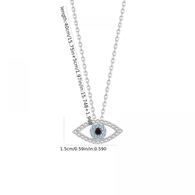 This 925 sterling silver pendant necklace features an eye-shaped design with zirconia stones for a lucky protection charm. Perfect for daily wear or vacation outings.