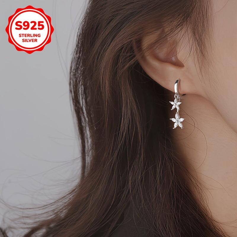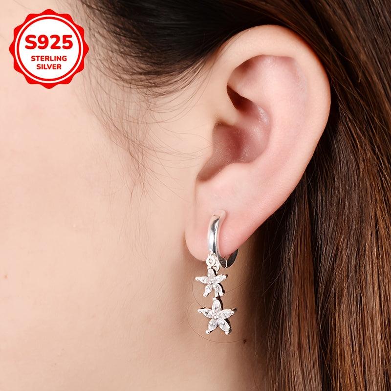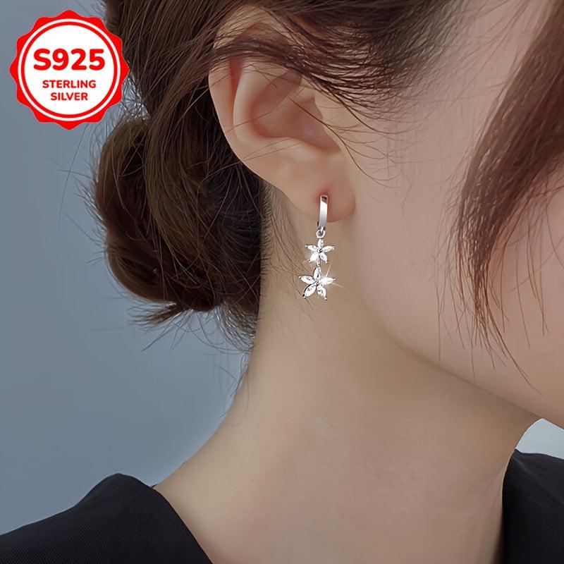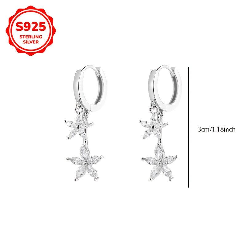 Elevate your look with these double flower dangle earrings made of 925 silver. Perfect for a boho chic style and a great Valentine's Day gift for your loved one.