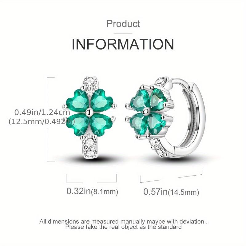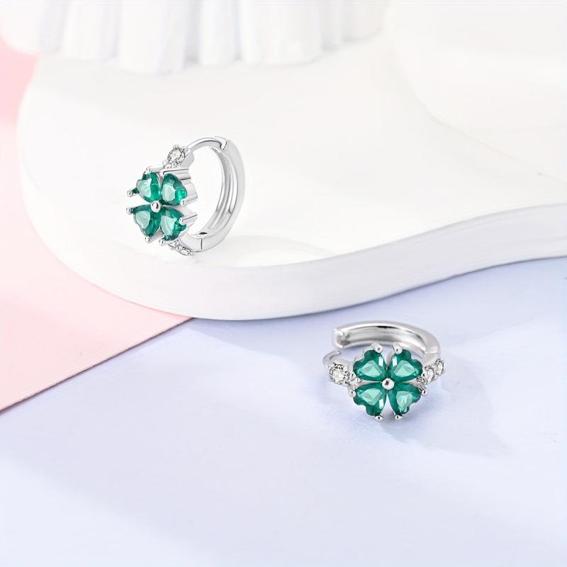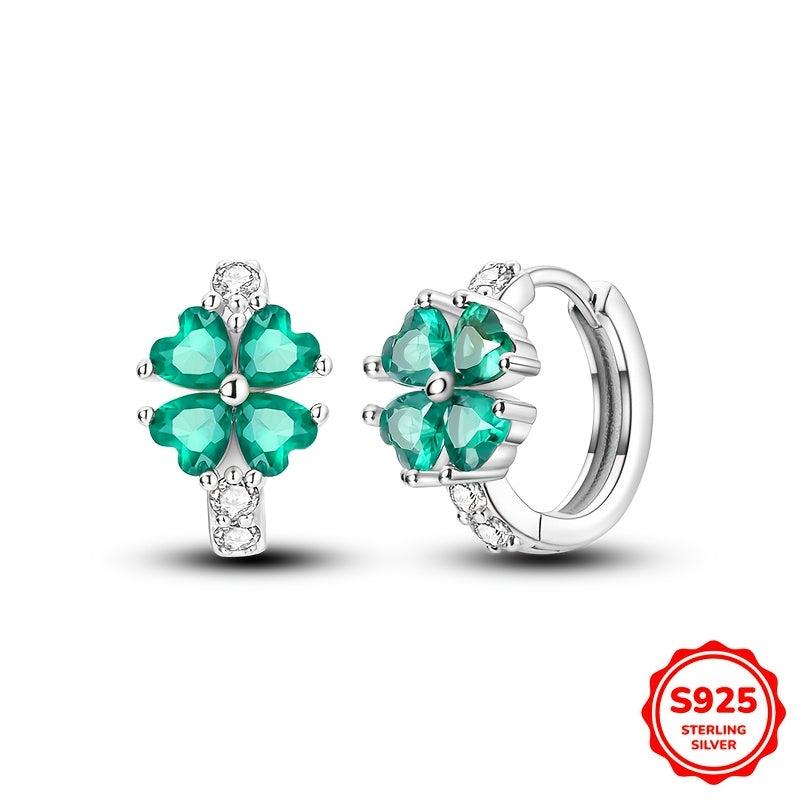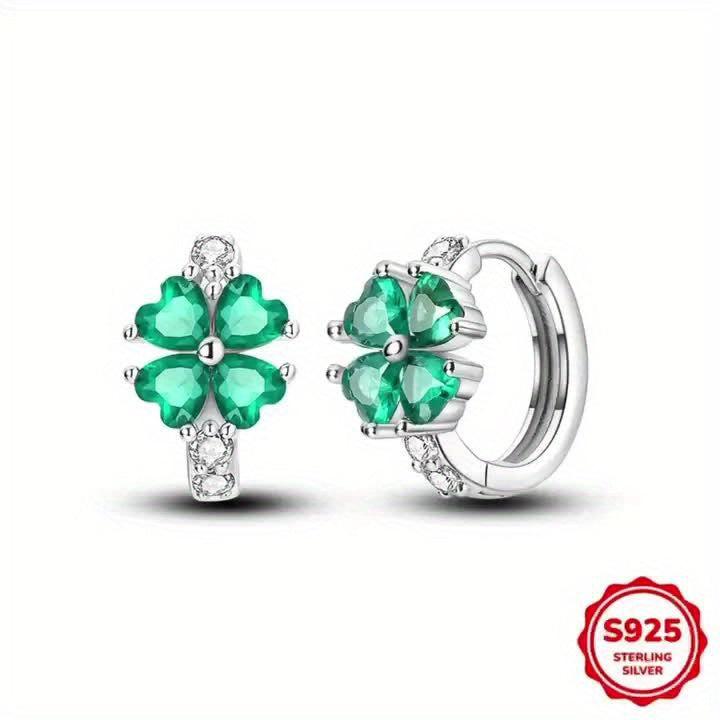 Fashionable pair of 925 silver earrings featuring four leaf clover design with inlaid stones. Perfect for parties, engagements, or as a gift.