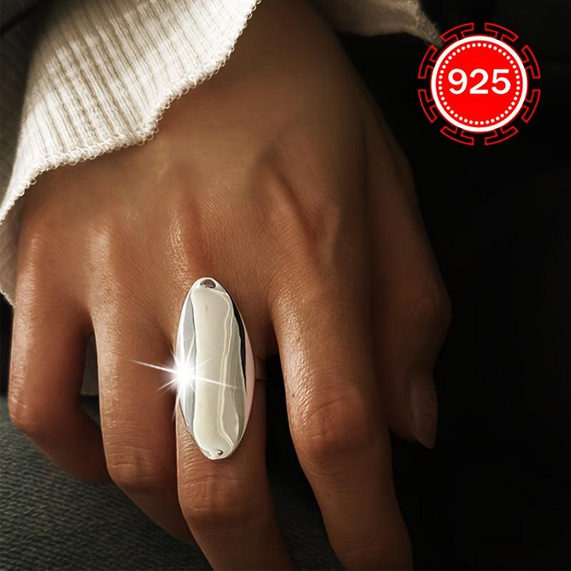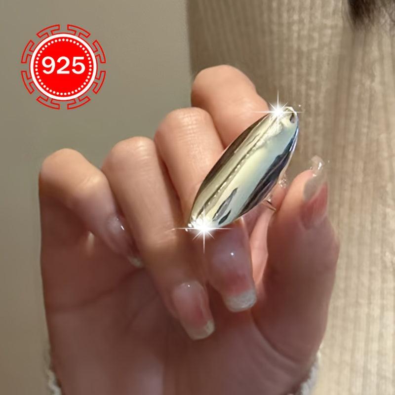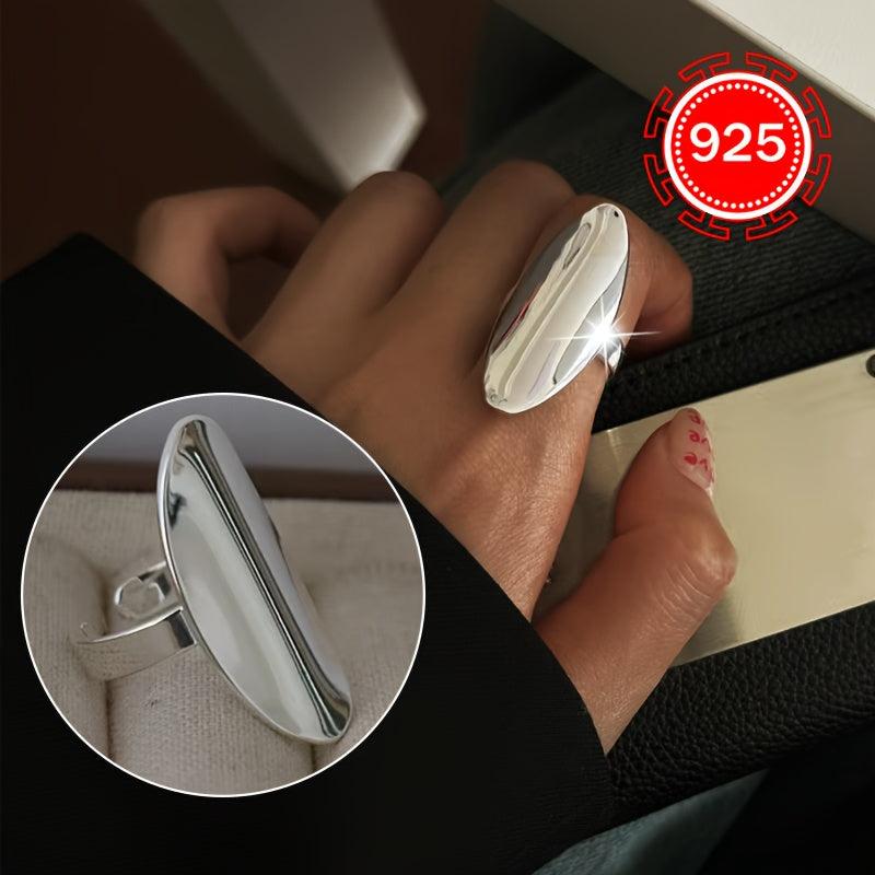 This unique 925 silver ring features a geometric curved surface with a glossy finish, perfect for the index finger or as a wedding band.