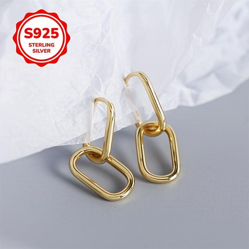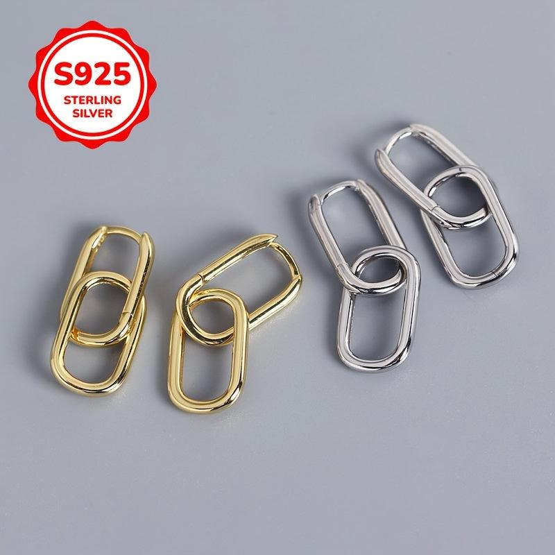 These elegant 925 silver earrings feature a geometric oval loop design, perfect for adding a touch of high-end style to your look. The low allergy clasp makes them suitable for sensitive ears all year round.