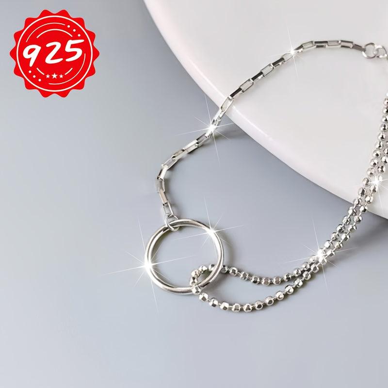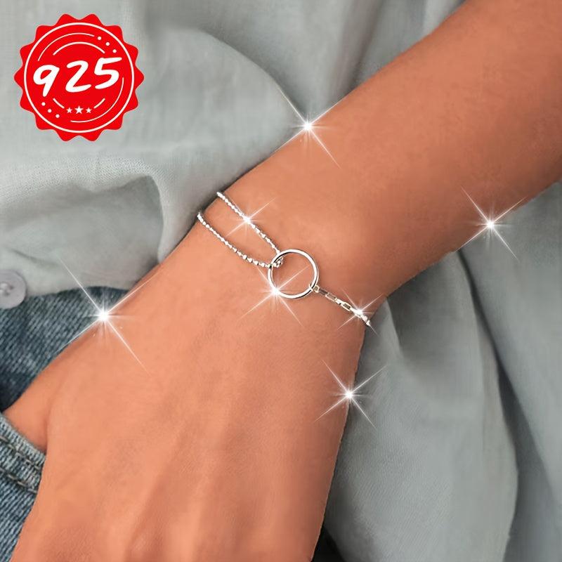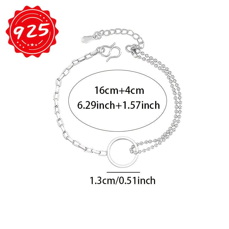 Elegant 925 silver bracelet with unique stitched interlocking design, perfect for women with low allergy. Fashionable and light hand ornament gift.
