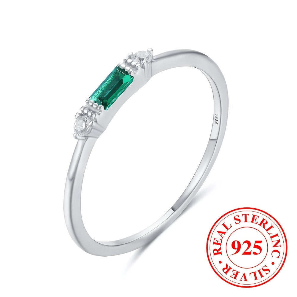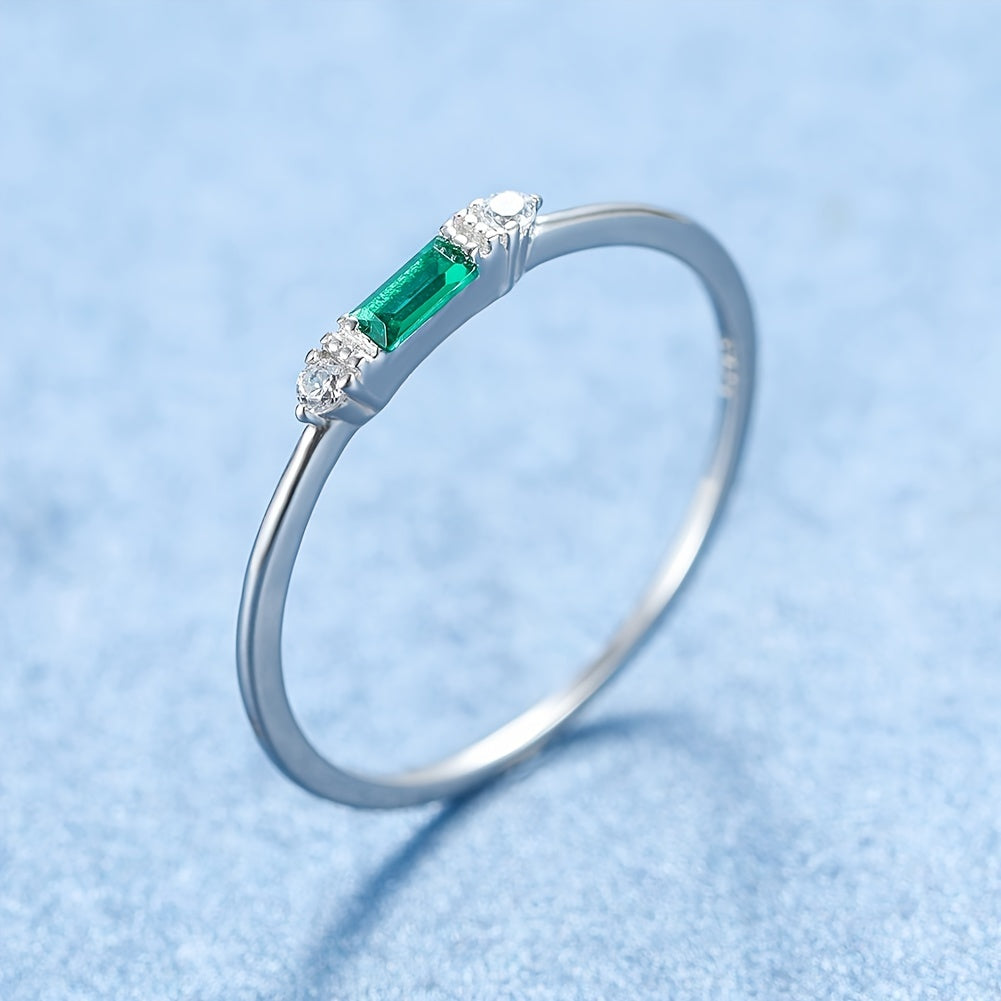 This stunning 925 silver eternity ring features a green zircon stone, perfect for engagements, weddings, or promises.