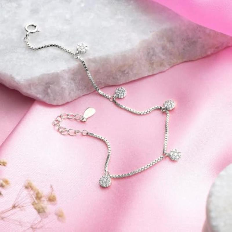 Add a touch of elegance to your outfit with this stunning Symphony of Flowers bracelet. Made from 925 sterling silver, the bracelet features a beautiful hanging floral charm that adds a touch of nature-inspired beauty. The rhodium plating gives the bracelet a luxurious finish, while the hallmark guarantees its quality and authenticity.