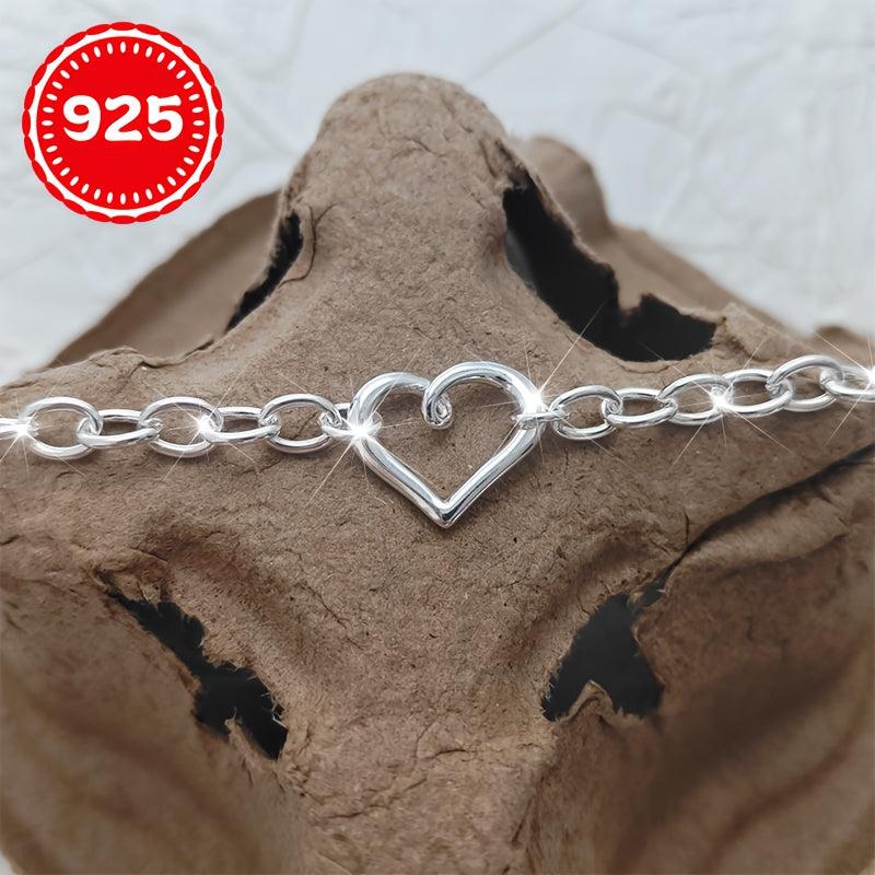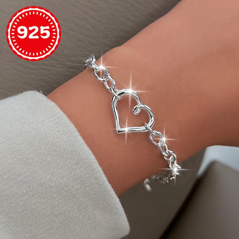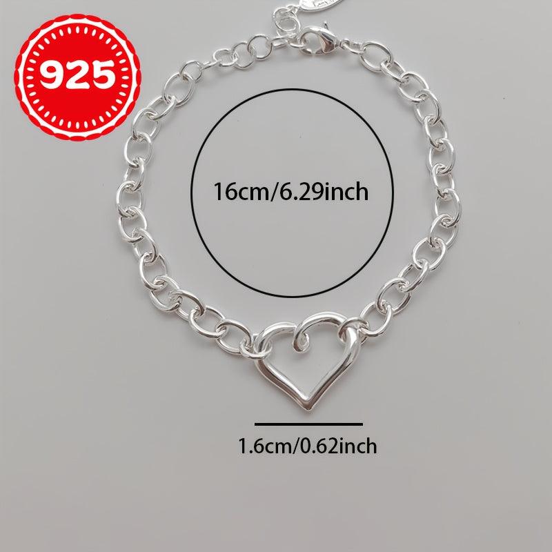 Elegant and minimalist hollow heart bracelet made of 925 silver. Perfect gift for couples, BFFs, or daily wear. Ideal for weddings, banquets, beach vacations.