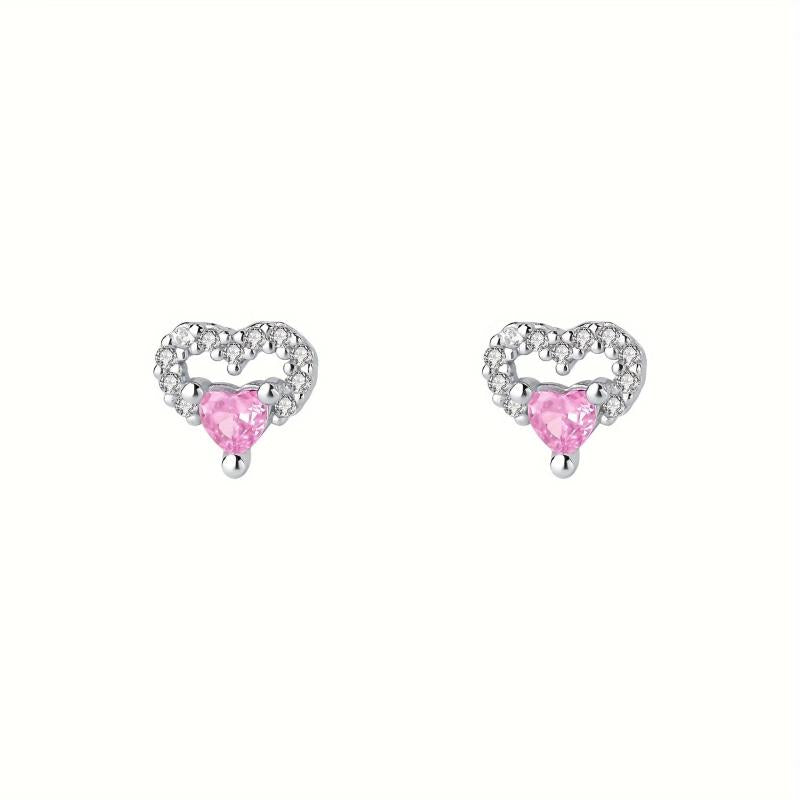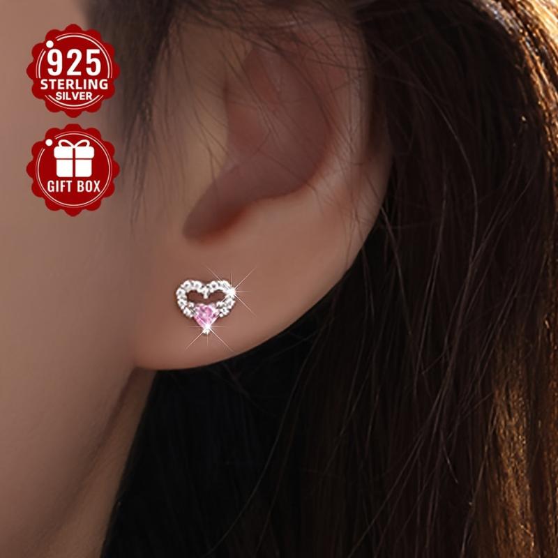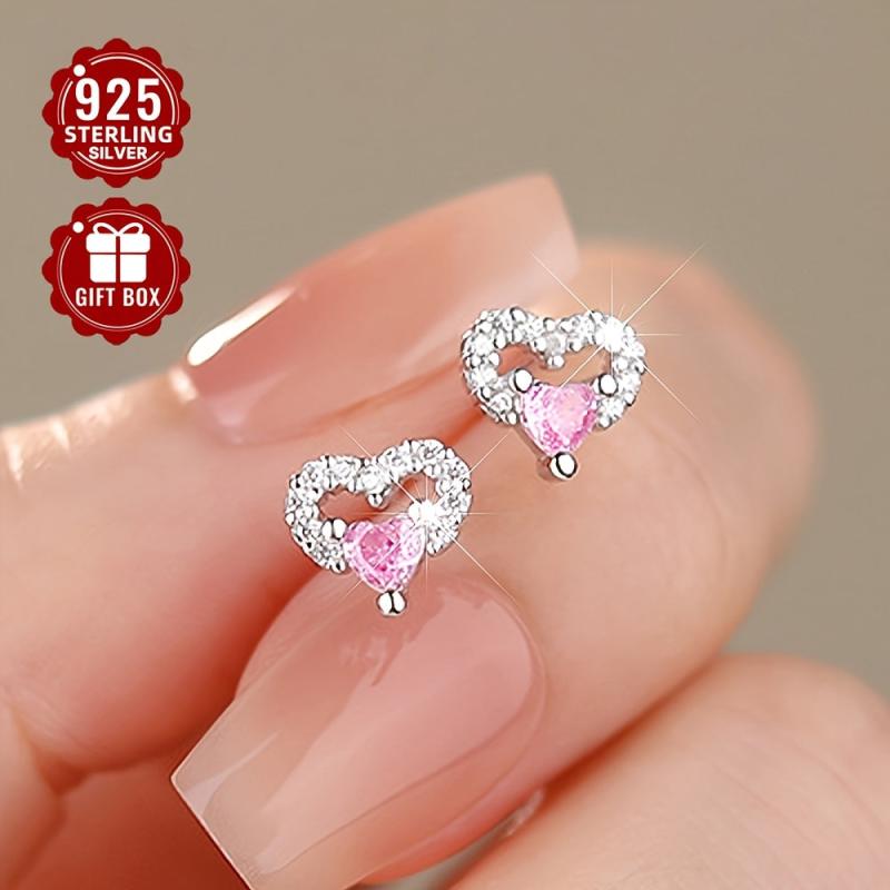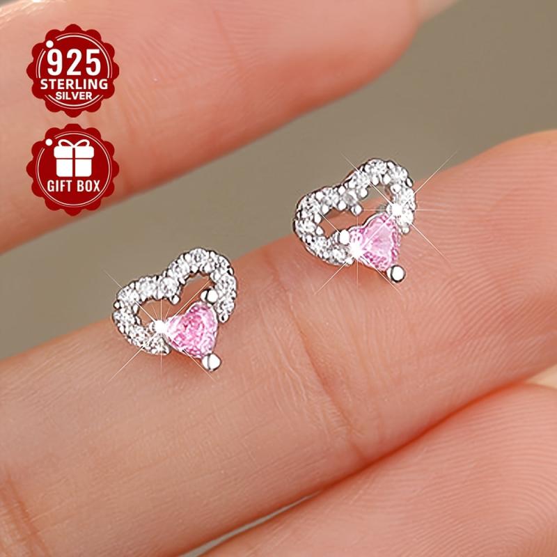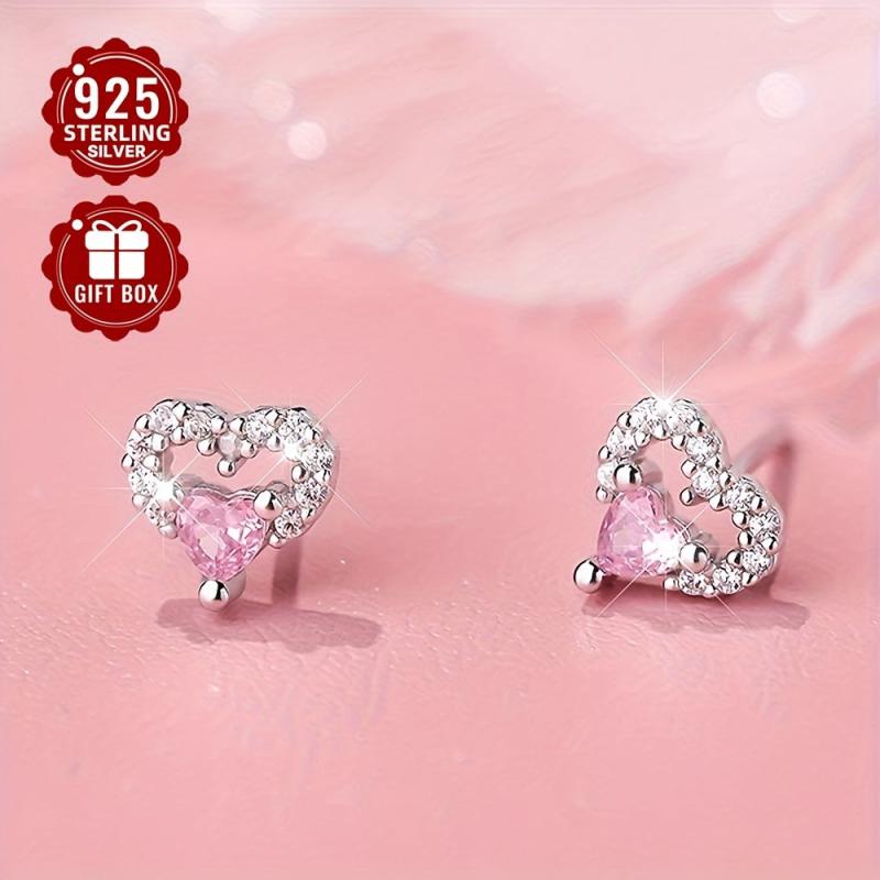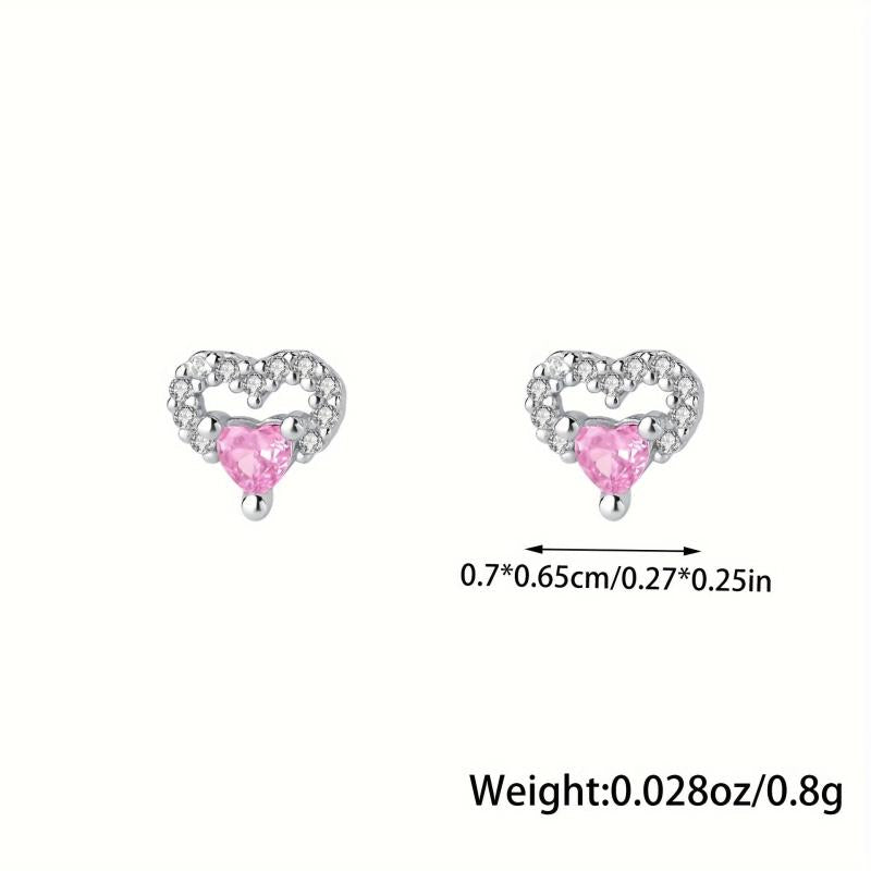 These earrings are made of 925 sterling silver and feature a heart design with cubic zirconia stones. They are lightweight and versatile, suitable for daily wear.