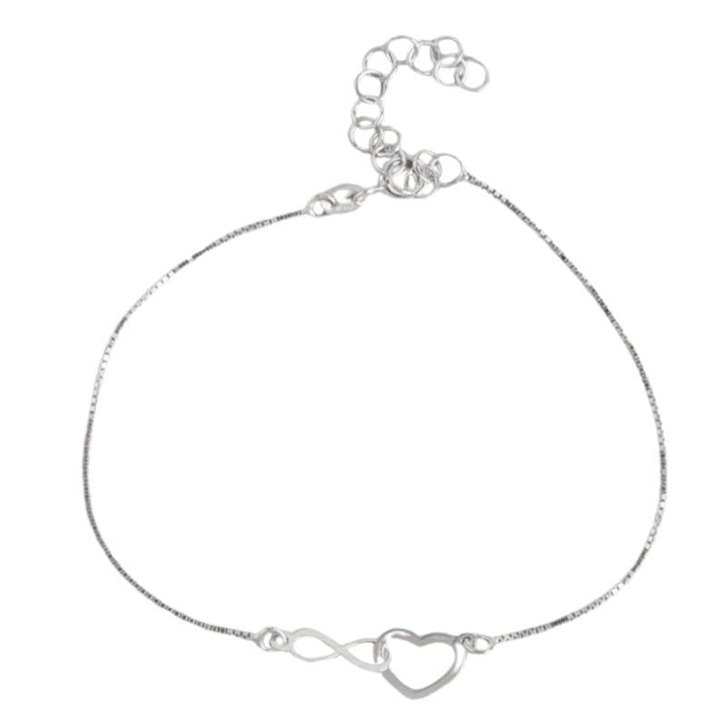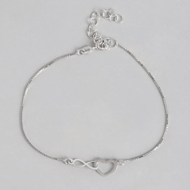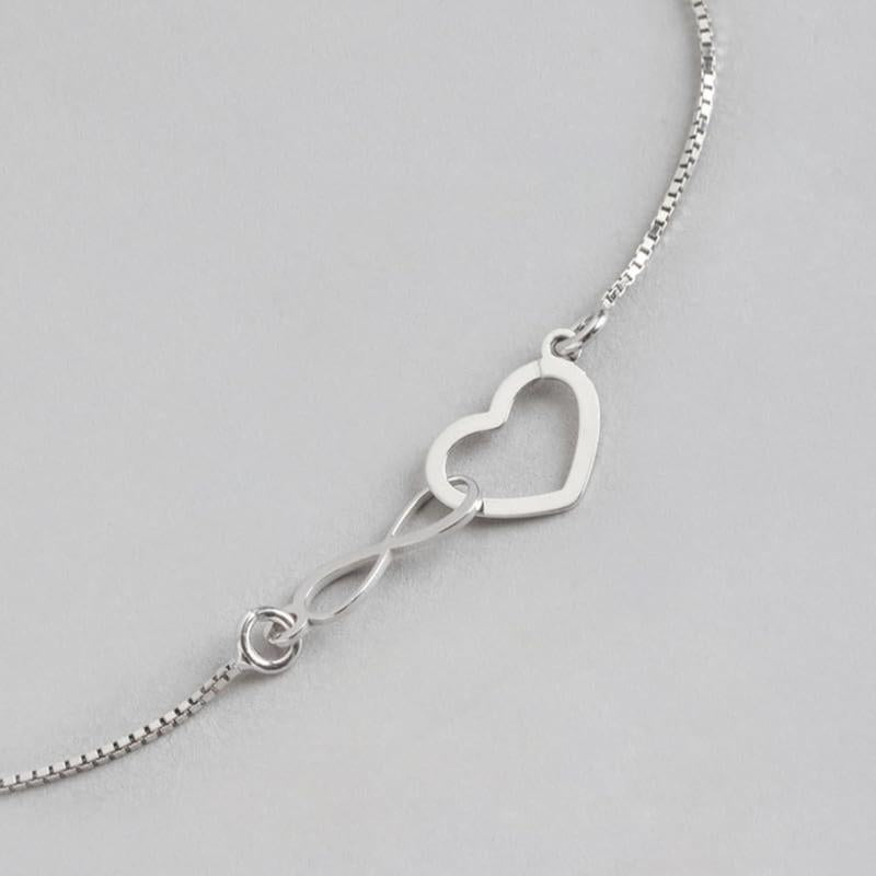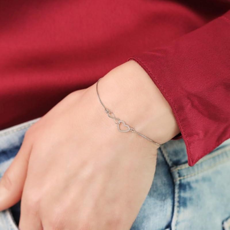This stunning 925 sterling silver bracelet features a heart and infinity symbol design with rhodium plating. A perfect gift for girls with the 925 stamp of authenticity.