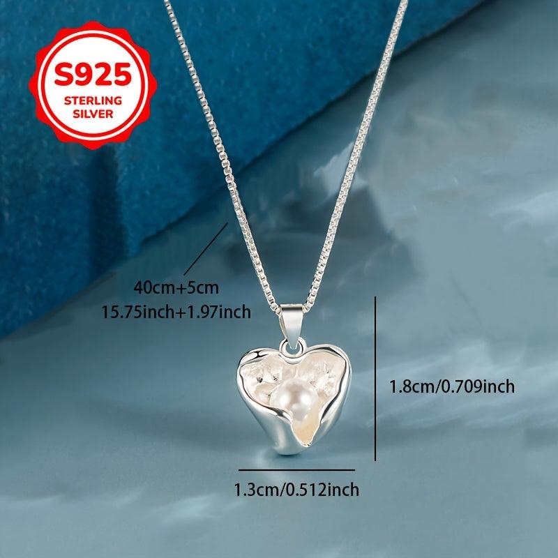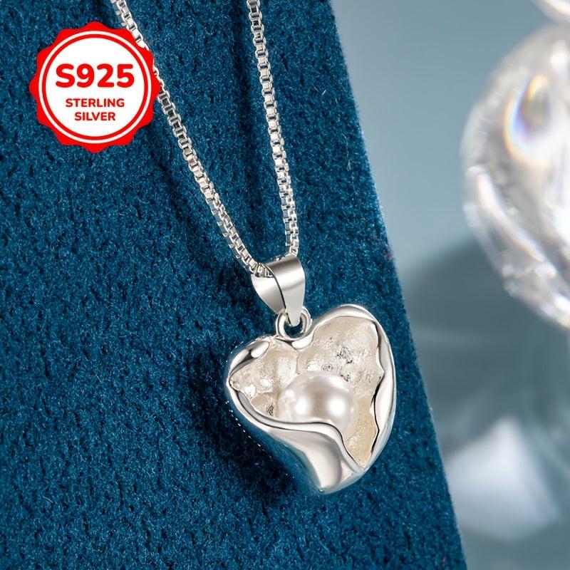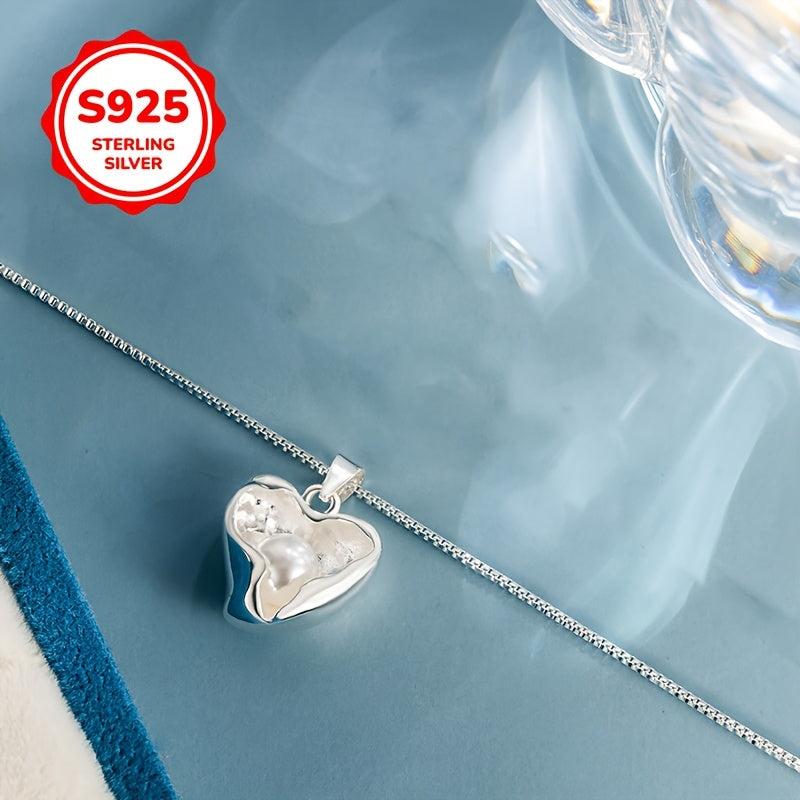 This fashionable heart necklace features irregular freshwater pearls on a 925 silver chain. Lightweight and versatile, perfect for any occasion.
