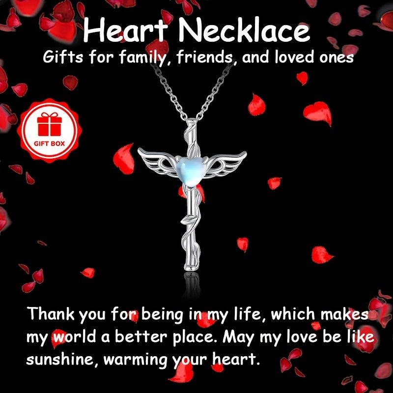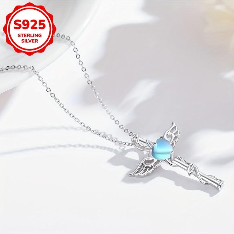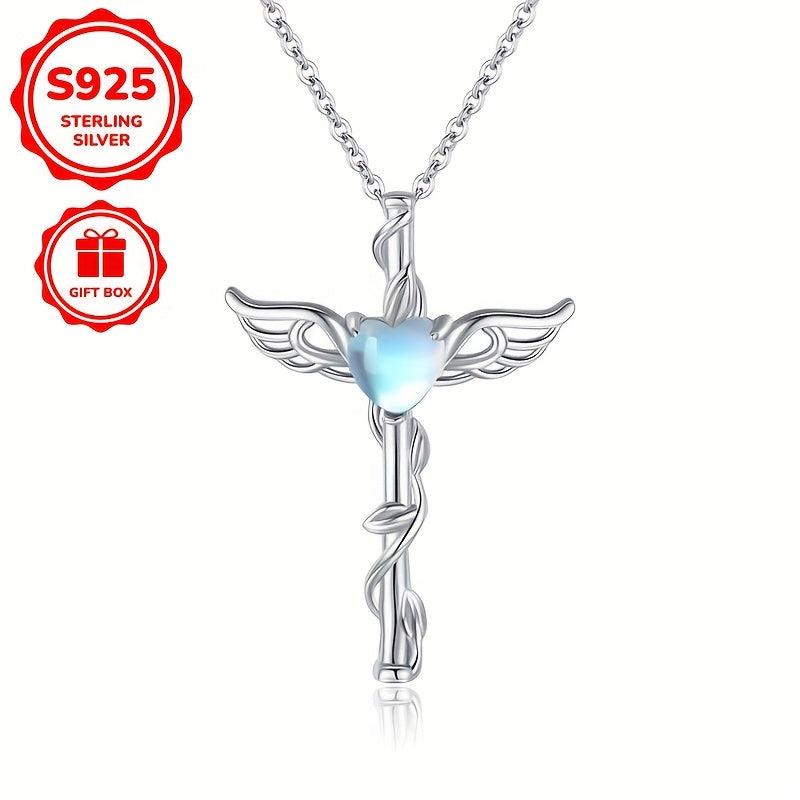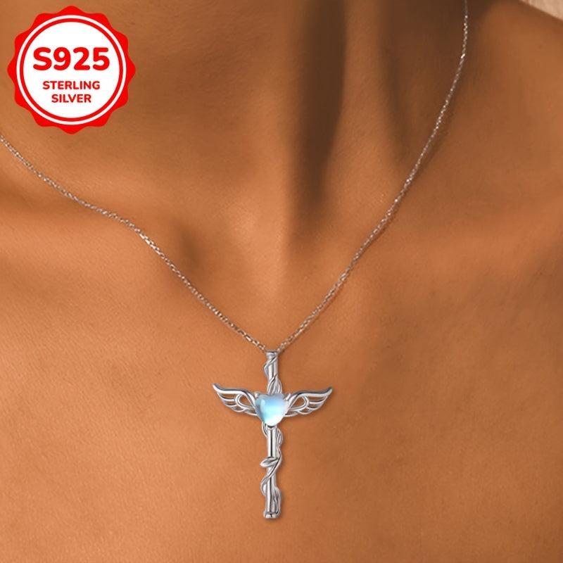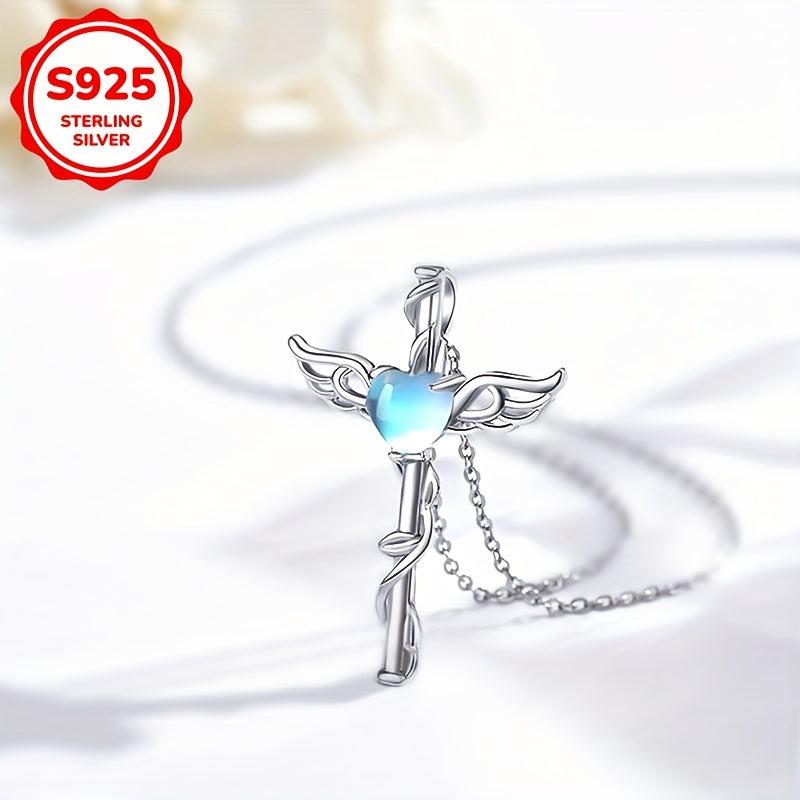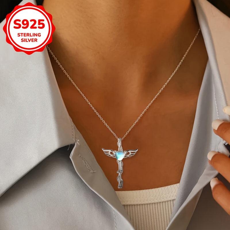 This exquisite 925 silver heart necklace features angel wings and sparkling cubic zirconia, making it a perfect gift for Valentine's or everyday wear. The durable chain adds to its charm.