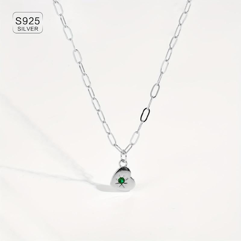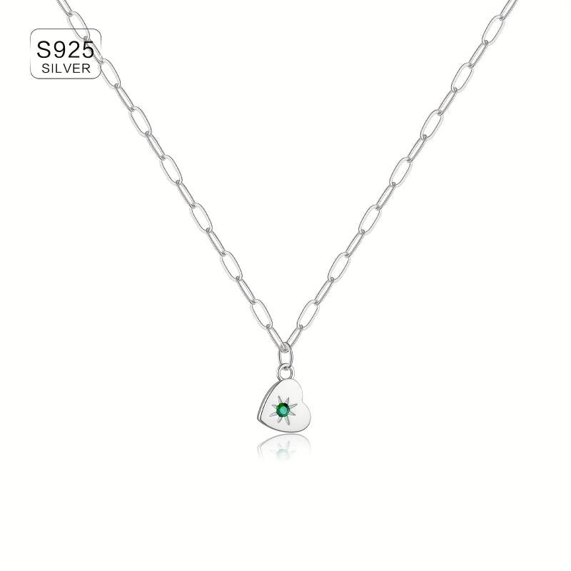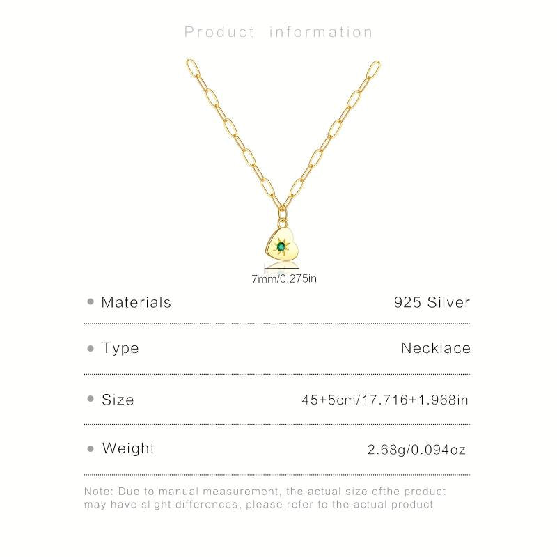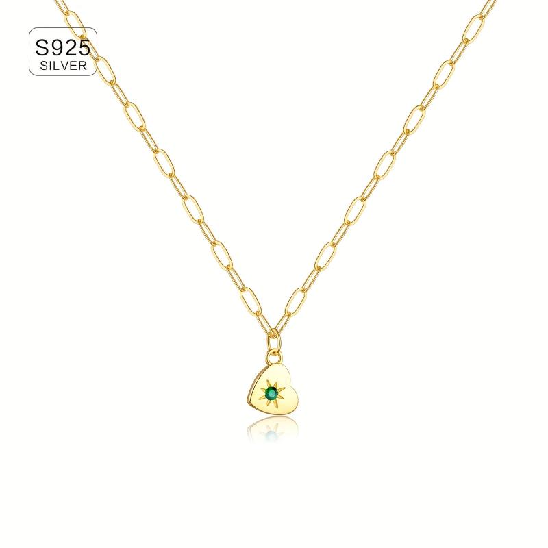 Dazzle in style with this stunning 925 silver heart pendant necklace featuring an 18K golden plated finish. The hypoallergenic chain is suitable for sensitive skin and is set with a green synthetic gemstone.