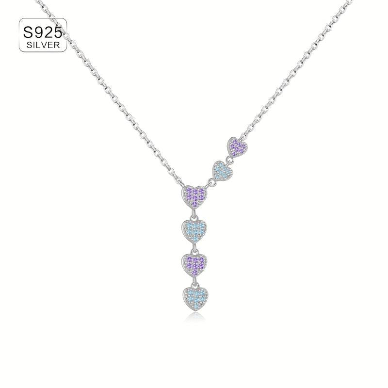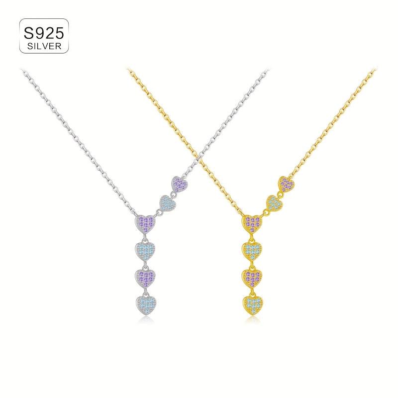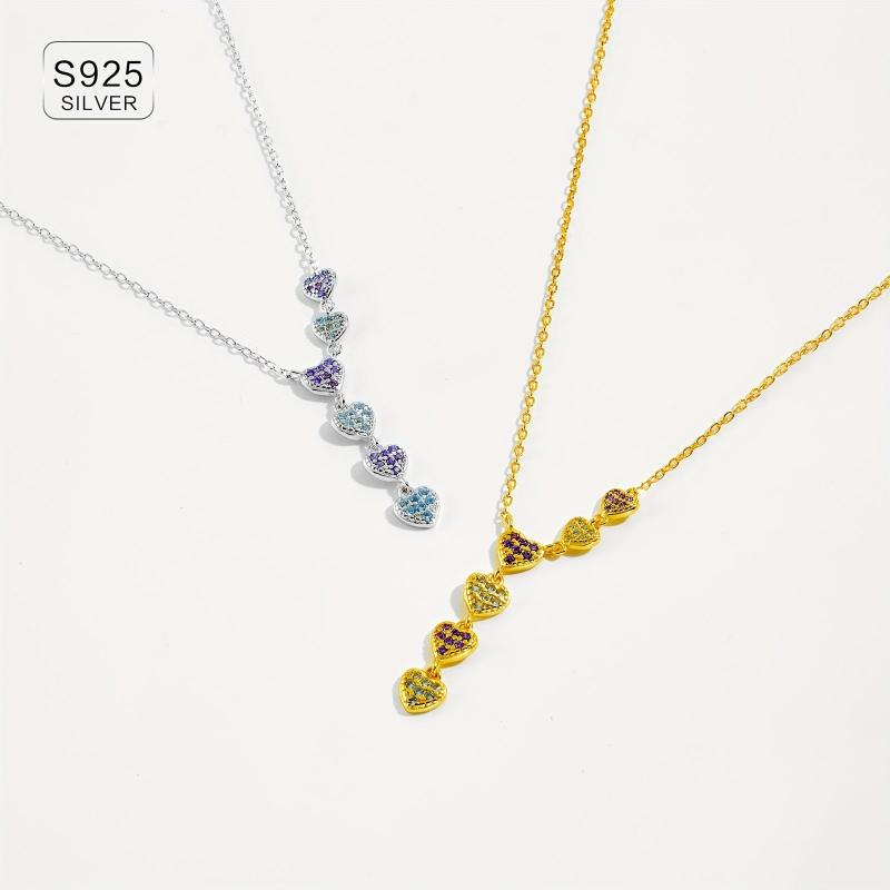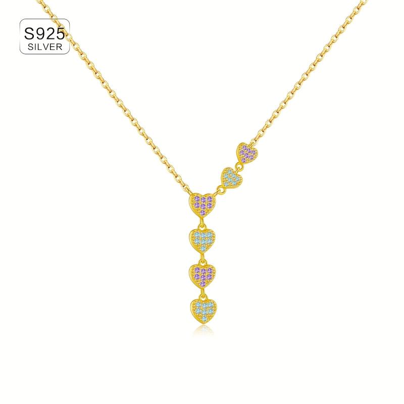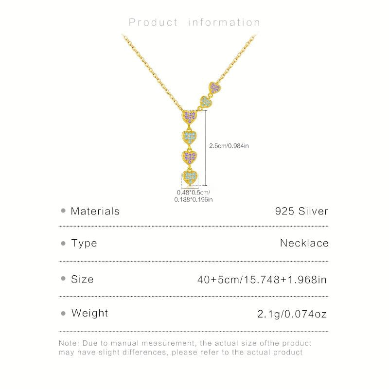 This stunning necklace features a heart-shaped pendant with colorful synthetic zirconia stones. The chain is made of 925 sterling silver with 18k gold plating.