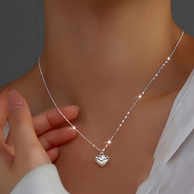 This 925 silver plated heart pendant necklace is a versatile daily wear accessory, perfect as a Valentine's gift. It is ideal for everyday jewelry and features a minimalist design with a durable chain.