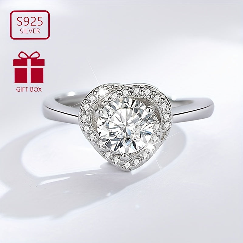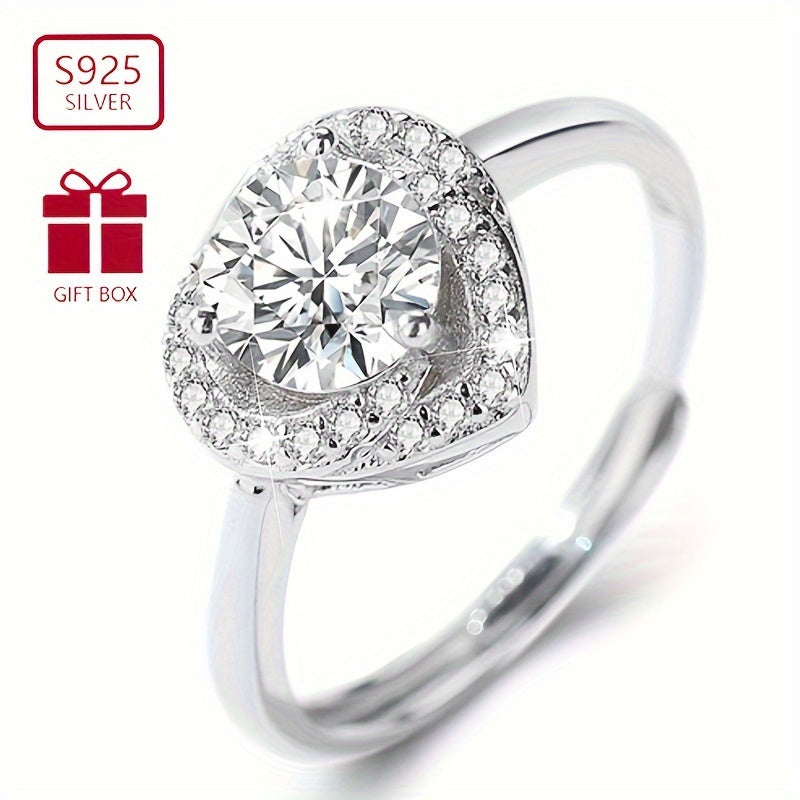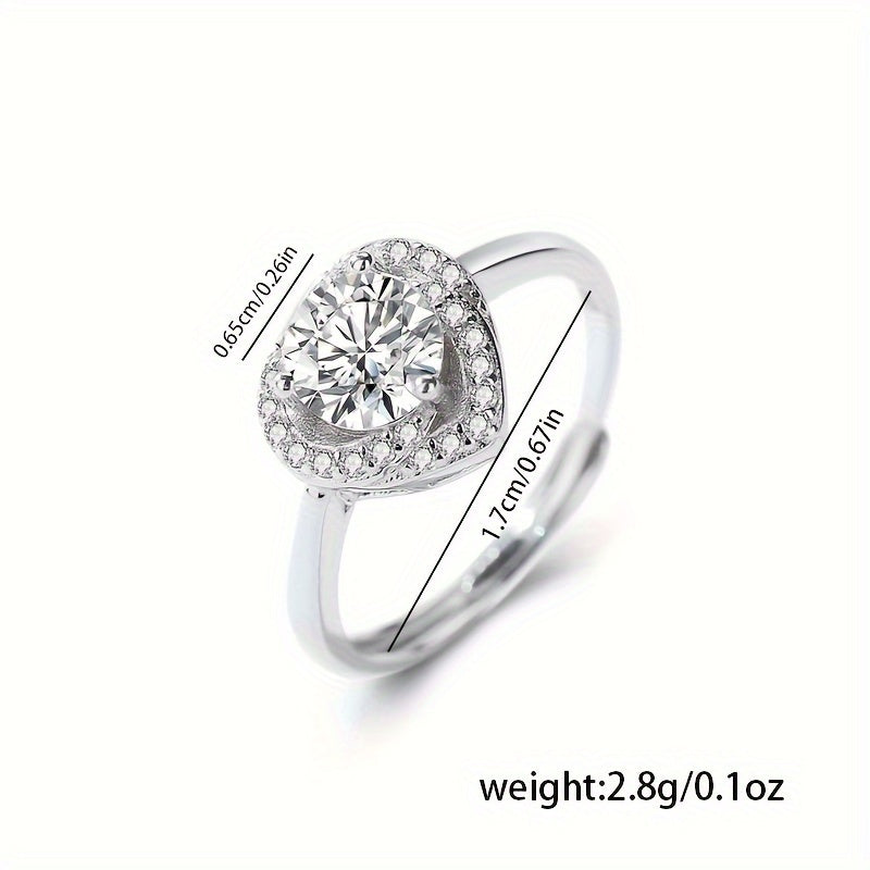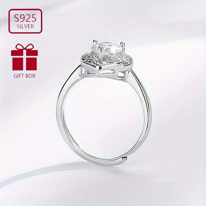 Stunning 925 silver open ring with heart-shaped Zirconia, perfect for engagement and wedding. Lightweight design with elegant appeal.