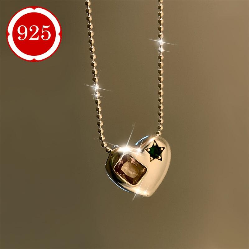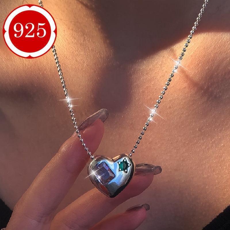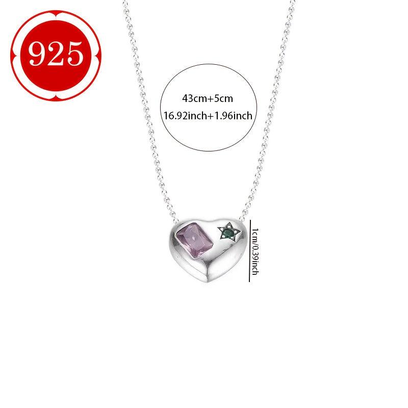 Elegant 925 silver necklace featuring colorful heart and star pendants. Hypoallergenic, lightweight, and versatile.