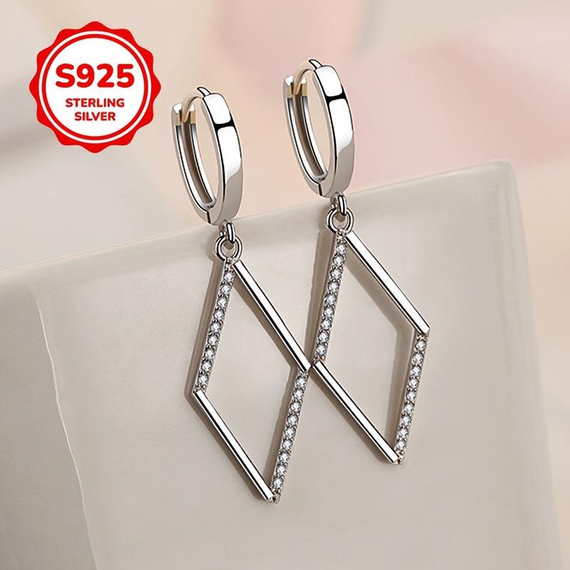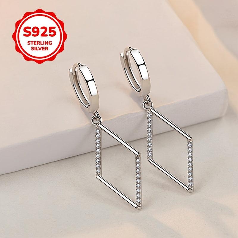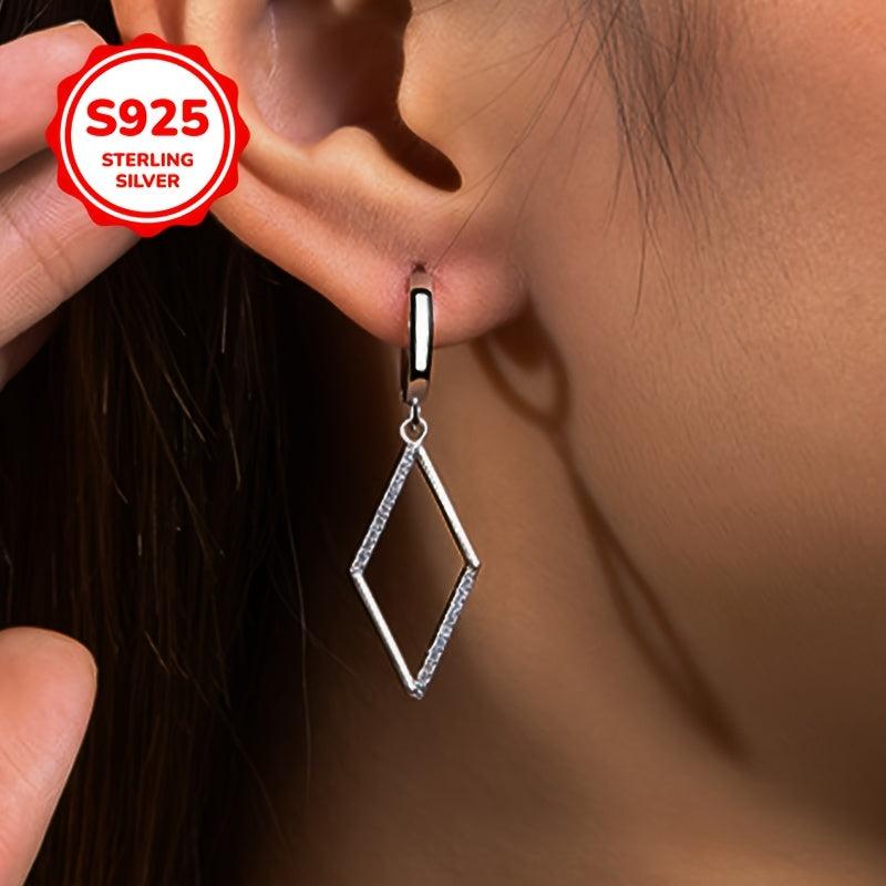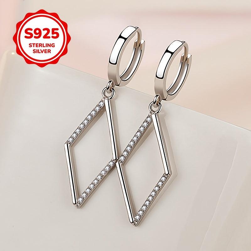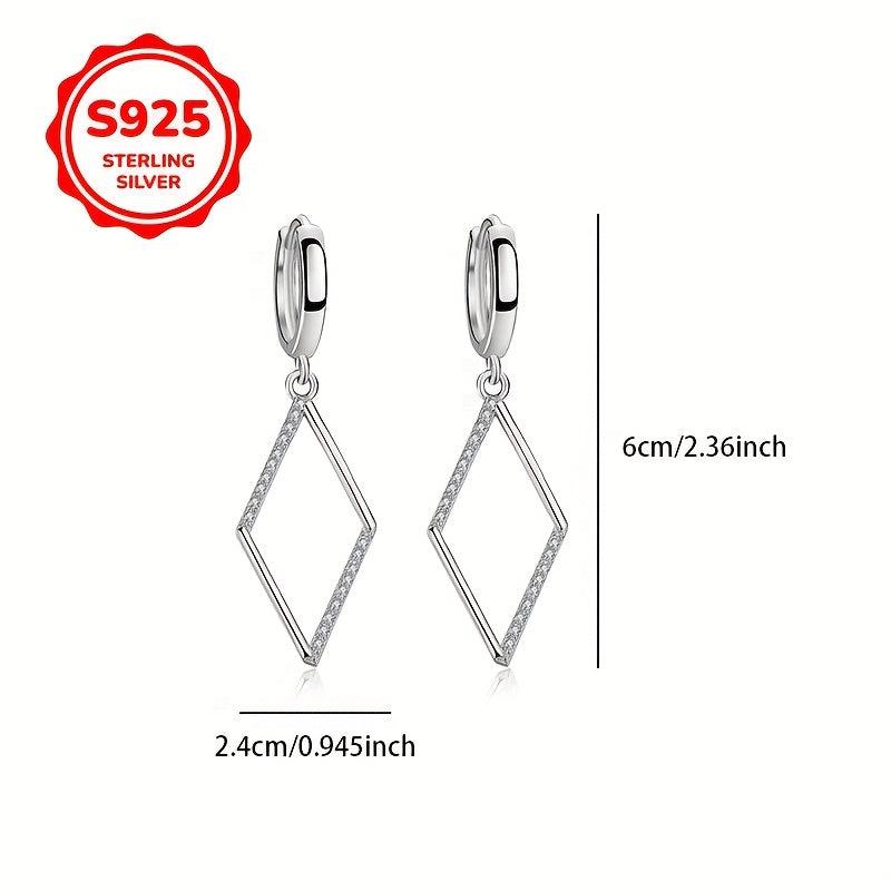 These high end earrings are made from hypoallergenic 925 silver, featuring a unique large rhombus pendant design. Suitable for all four seasons and 12 months.