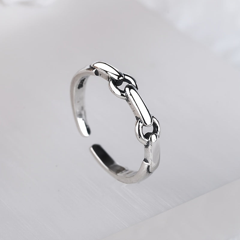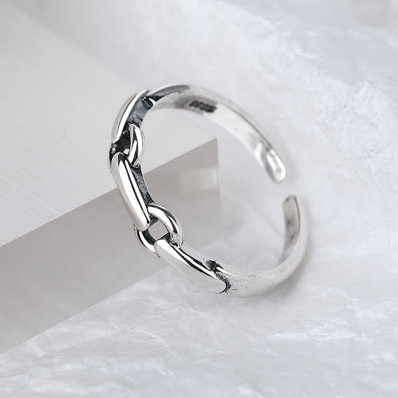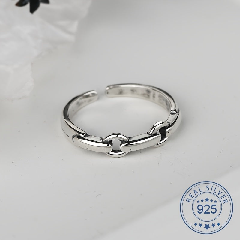 Add a touch of vintage charm to your look with this hollowed chain ring. Made of 925 sterling silver, this retro-style ring is stackable and perfect for daily wear.