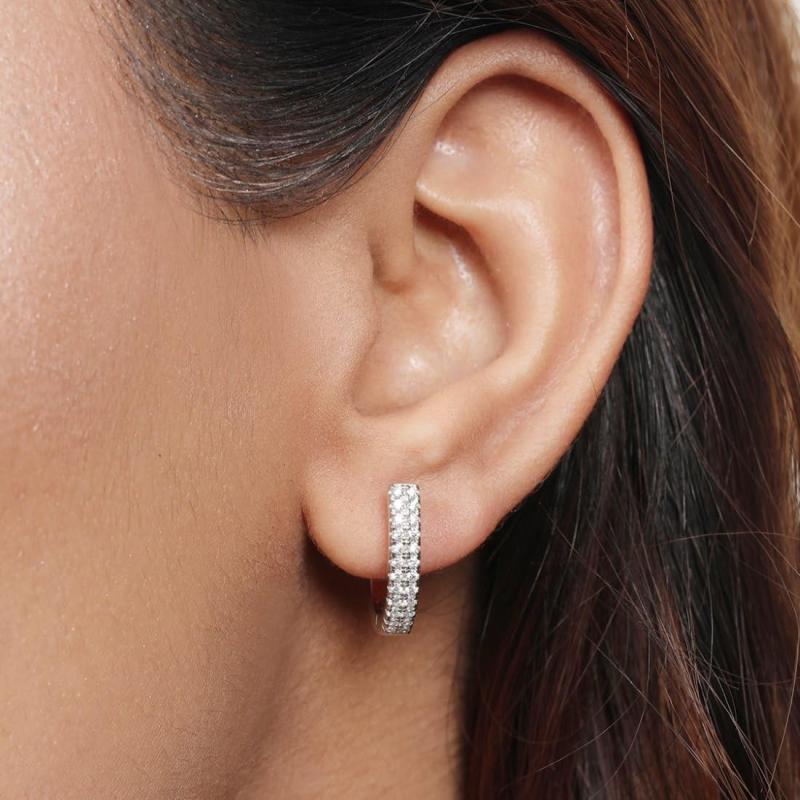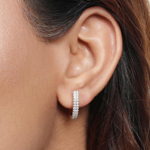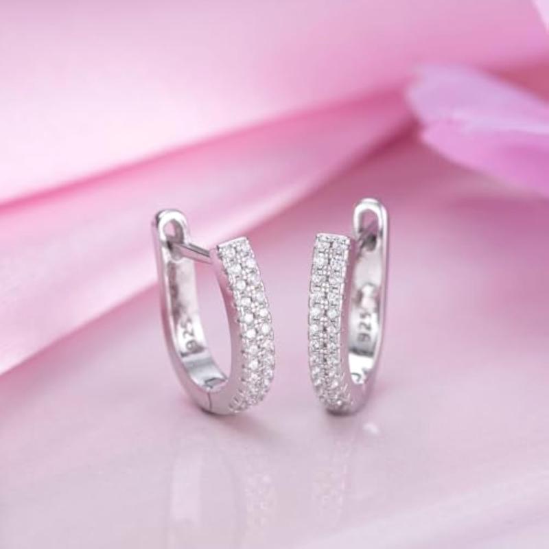 Enhance your style with these dazzling small hoop earrings featuring cubic zirconia stones. Made of high-quality 925 sterling silver with a rhodium plating.