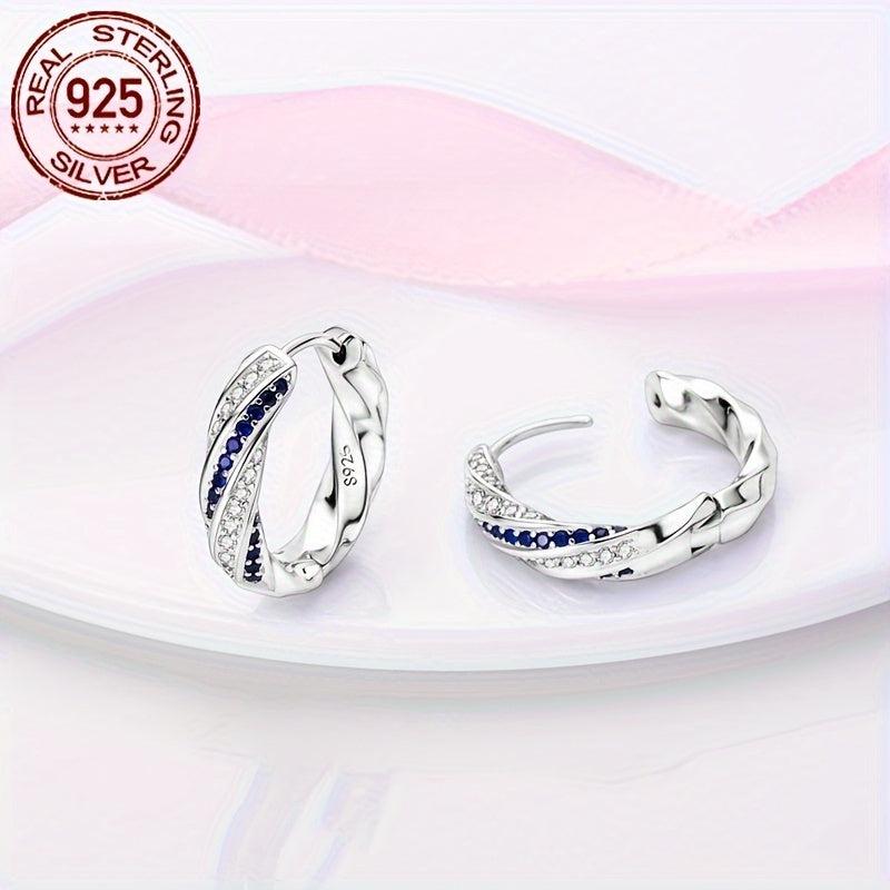 Elegant 925 sterling silver hoop earrings with twisted design and sparkling cubic zirconia. Perfect for women to wear at weddings, parties, or as a fine jewelry gift.