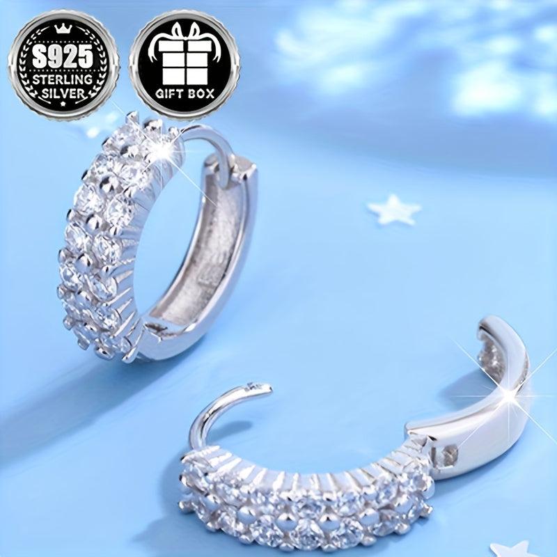 Add a touch of glamour to your casual look with these sparkling sterling silver hoop earrings featuring high-quality cubic zirconia stones. Safe for sensitive ears.