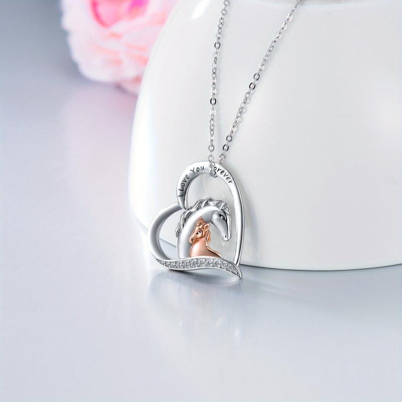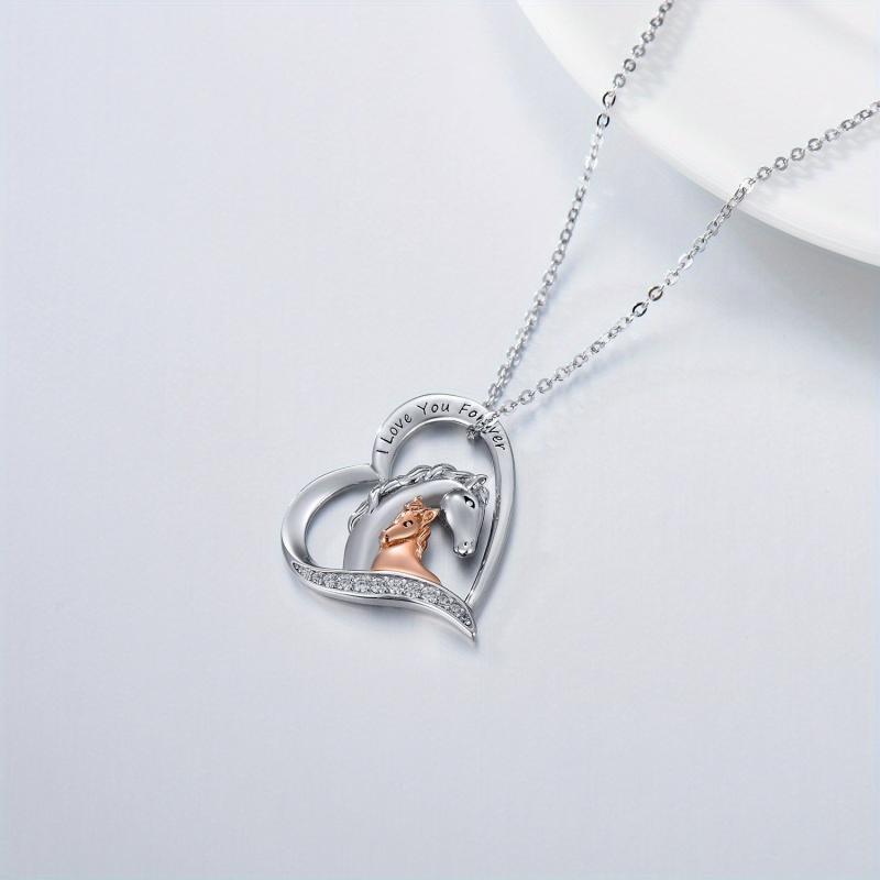 Express your love with this beautiful horse necklace. Crafted in 925 sterling silver, it features two horses intertwined symbolizing eternal love.