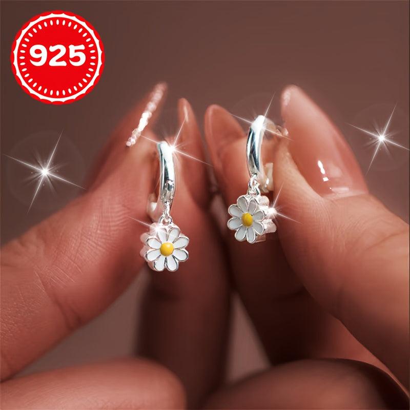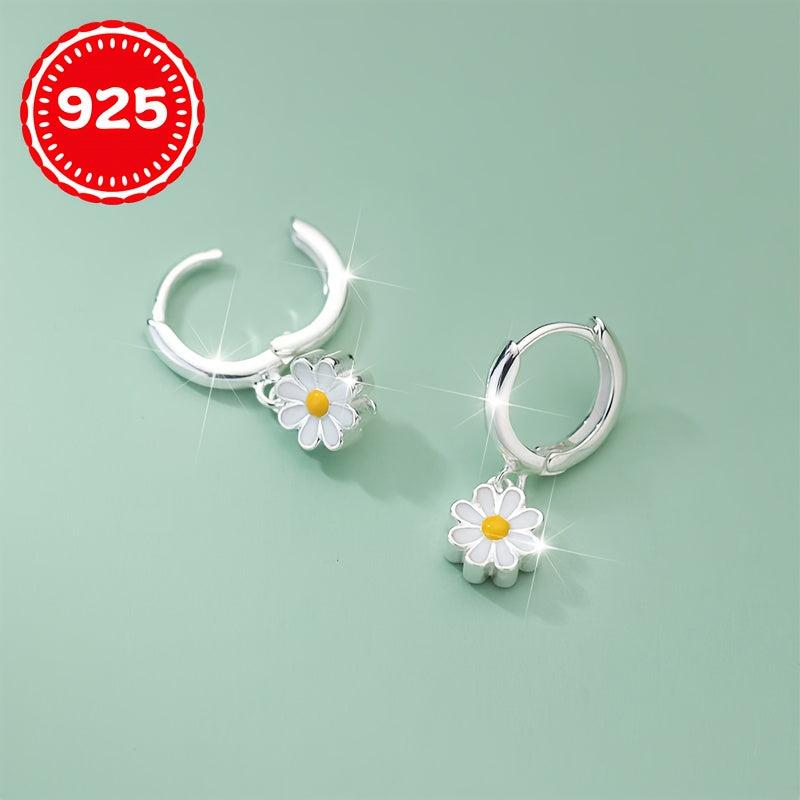 Elegant pair of daisy ear clips made of 925 silver, perfect for gifting. Cold and high-end ear decoration.