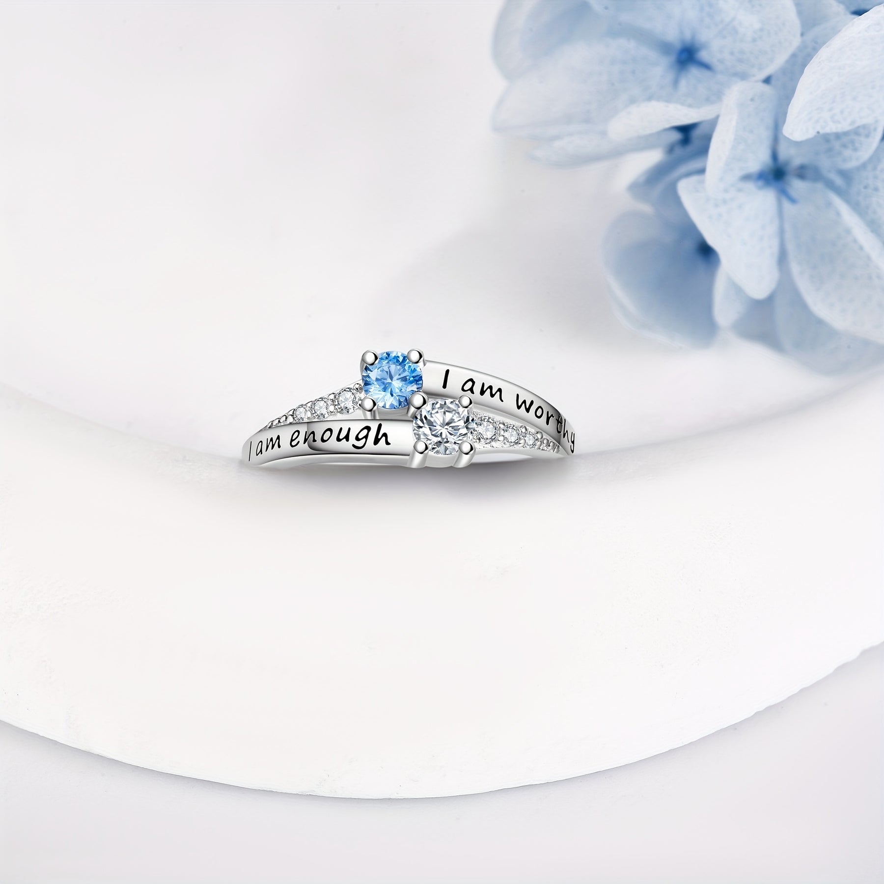 This stunning 925 sterling silver ring with zirconia features an inspirational 'I Am Enough' message. A perfect gift for women to remind them of their worth and confidence.