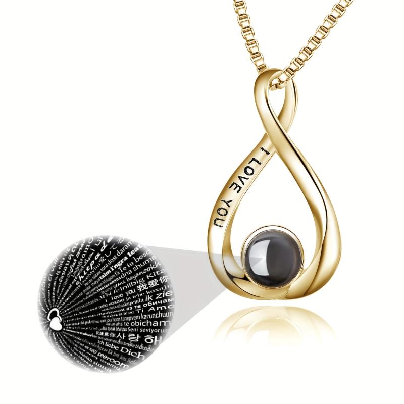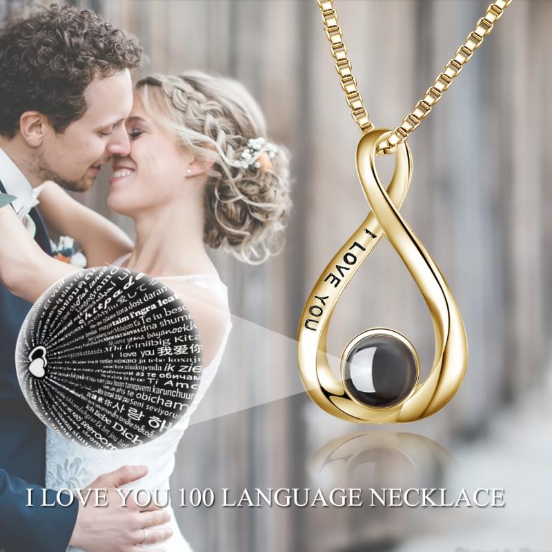 Express your love with this stunning 925 sterling silver necklace that displays 'I Love You' in 100 languages. The infinity design adds a timeless touch to this meaningful piece of jewelry.