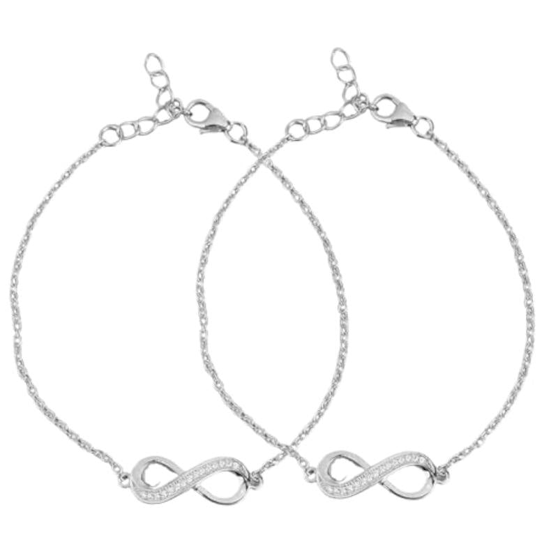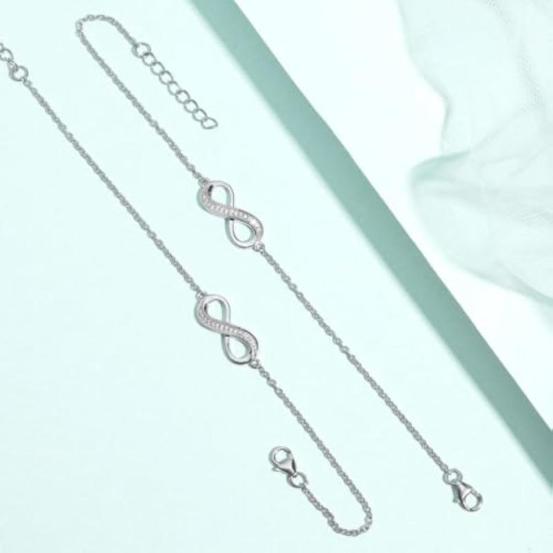 This stunning 925 sterling silver bracelet features an infinity symbol design. Rhodium plated for a brilliant shine. Hallmark for authenticity.